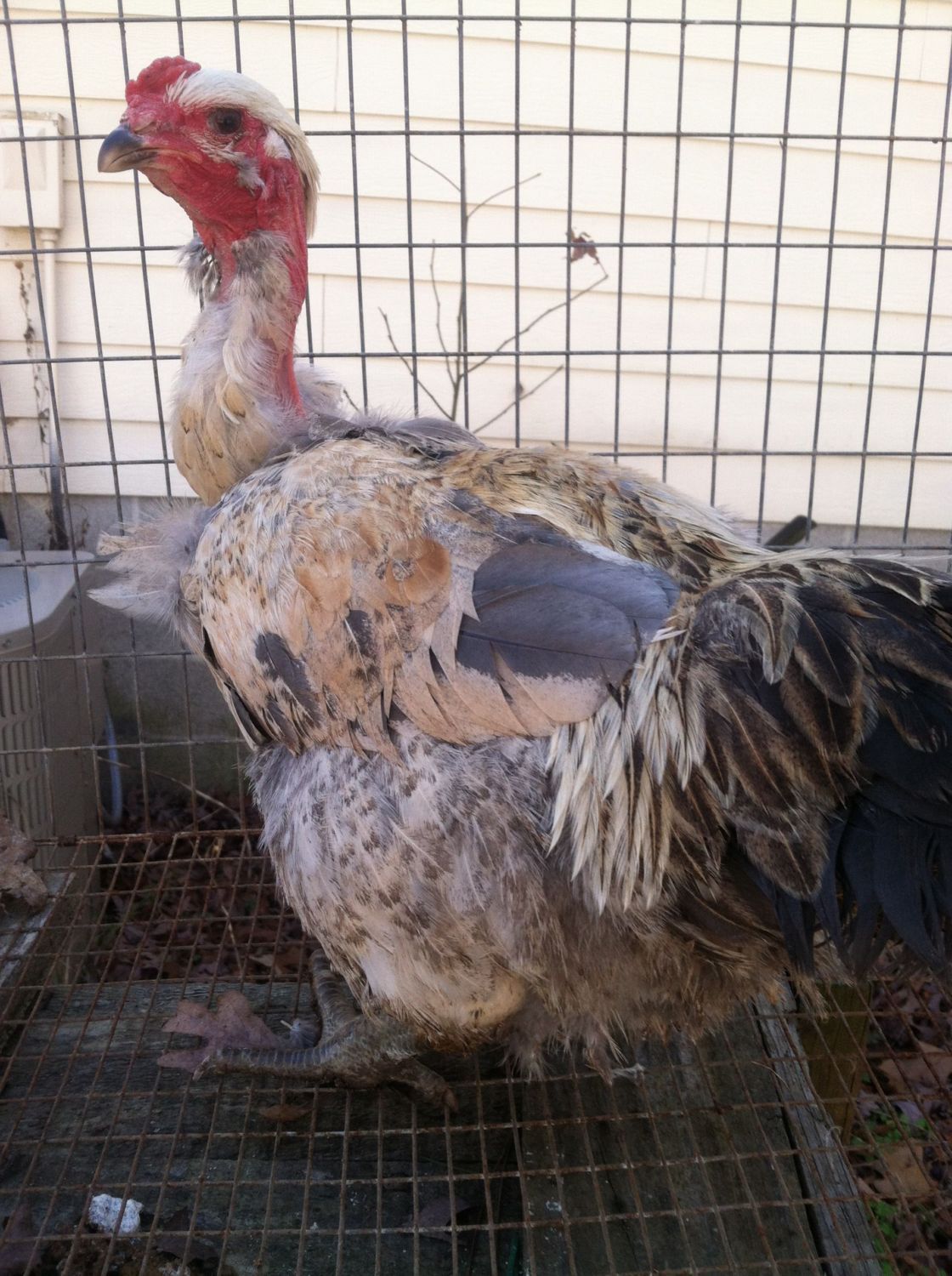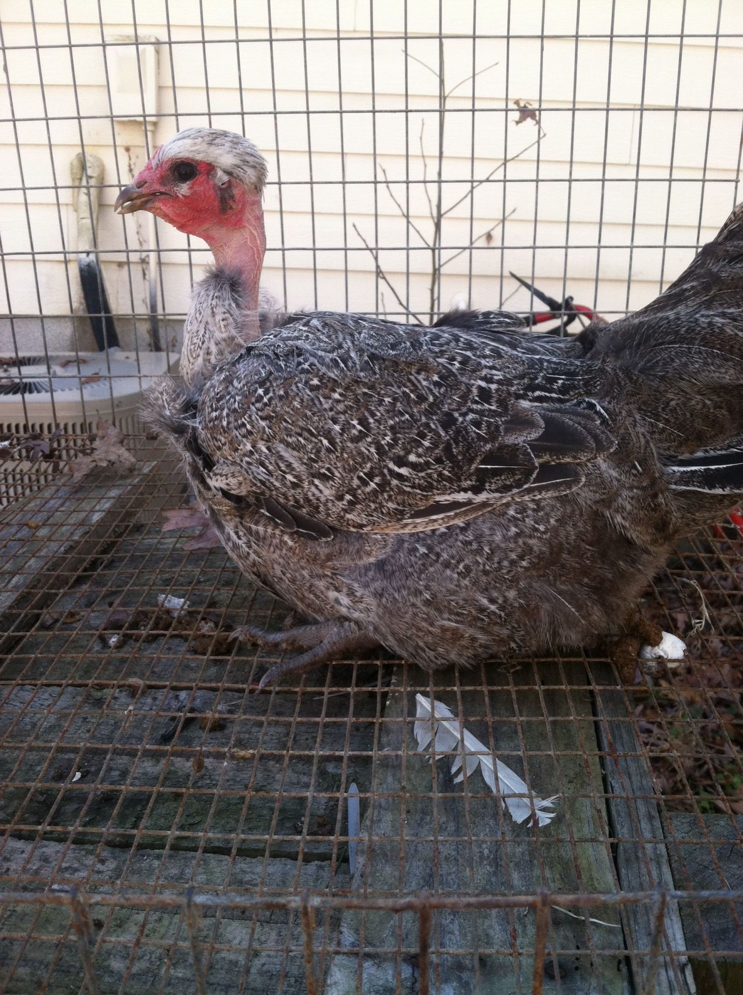 I shouldn't complain since I got her for free, but I wanted to pair her with my FBCM roo and I can't do that (for the olive eggs) now. I guess I could see if her fluffy cheeks breed true. Can you see it? Fluffy cheeks and legs.
