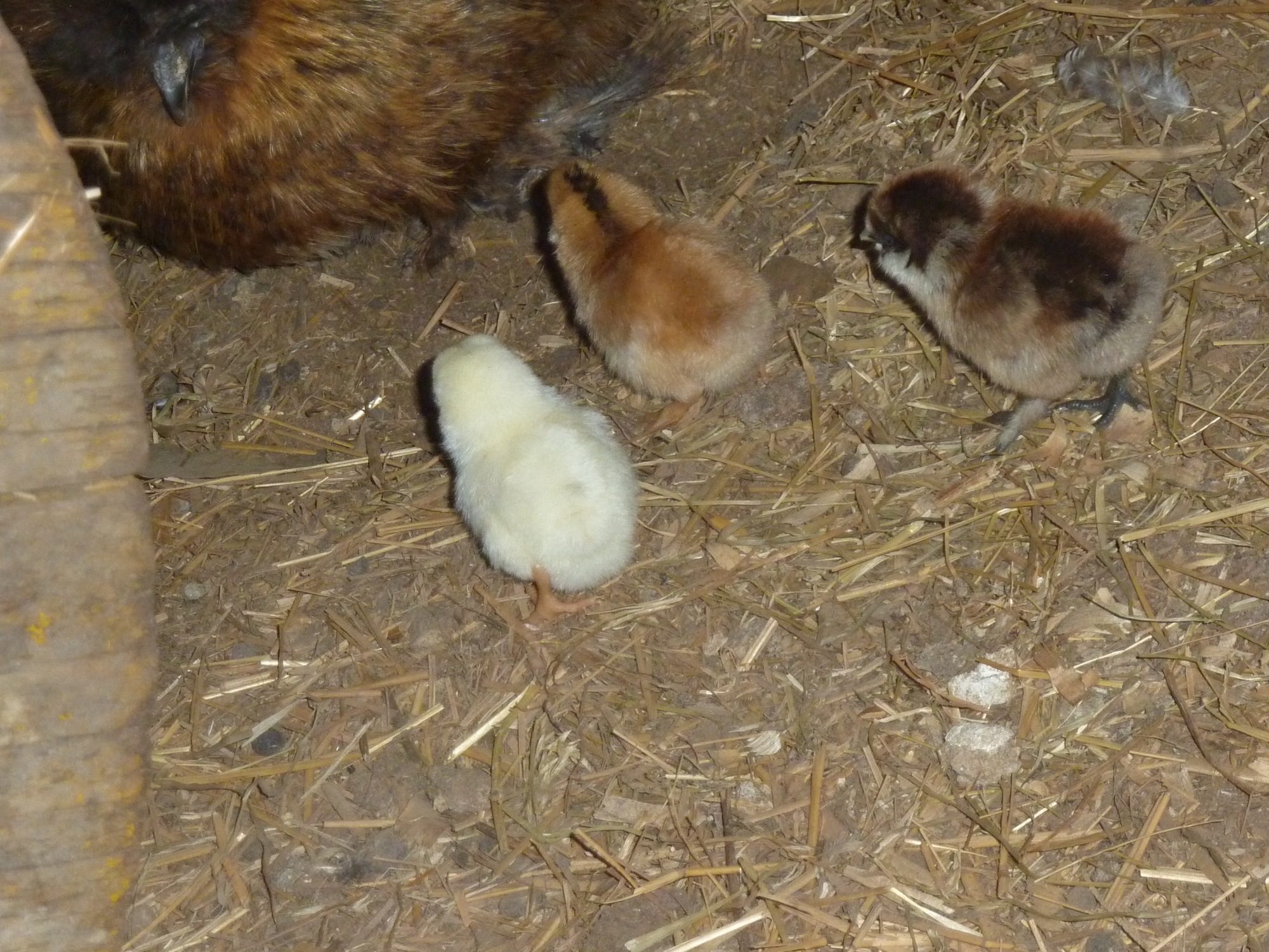 Three of Princess's chicks: Snart, Sight and Roshashanah. The one hiding is Nat.