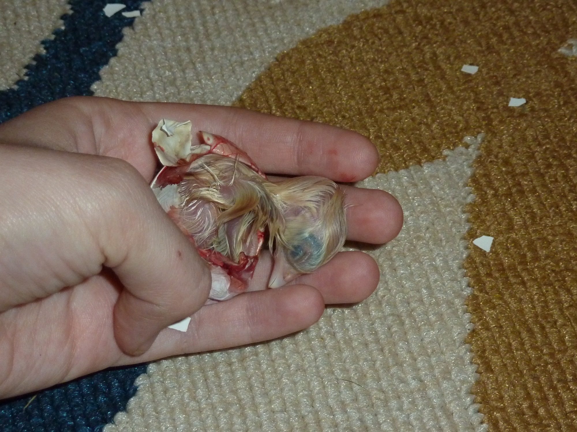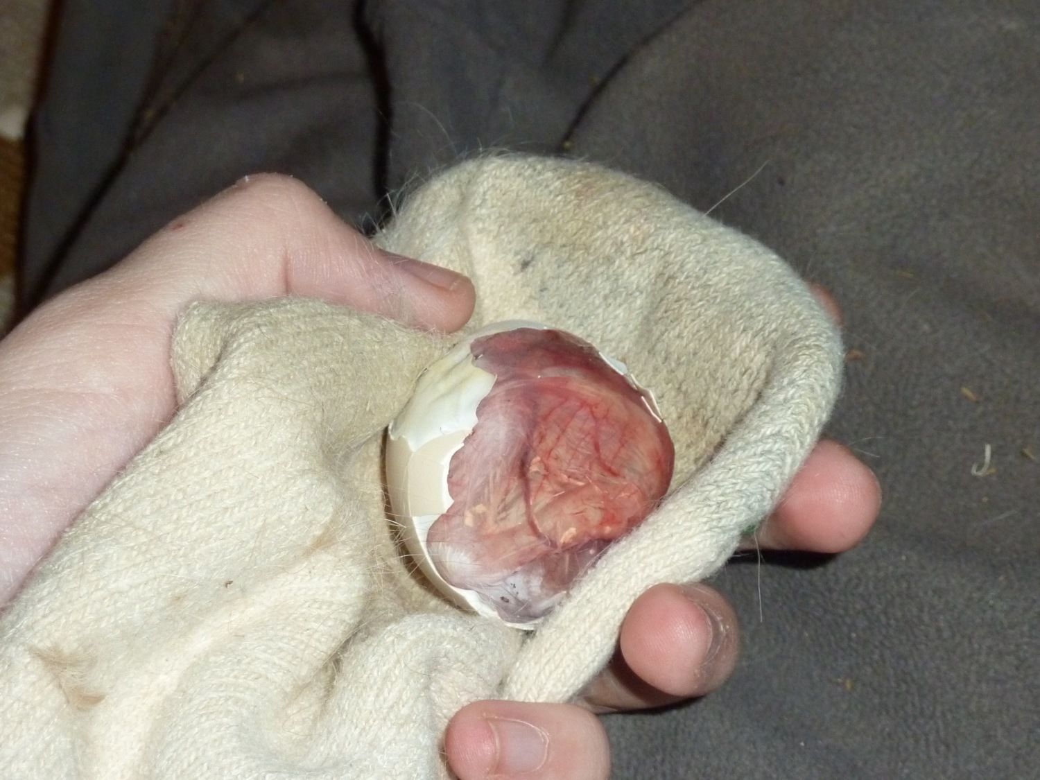 Here are some photos of my babies. All three were assisted hatching. Two of them were positioned wrong in the shell, the last I was afraid was shrink-wrapped.