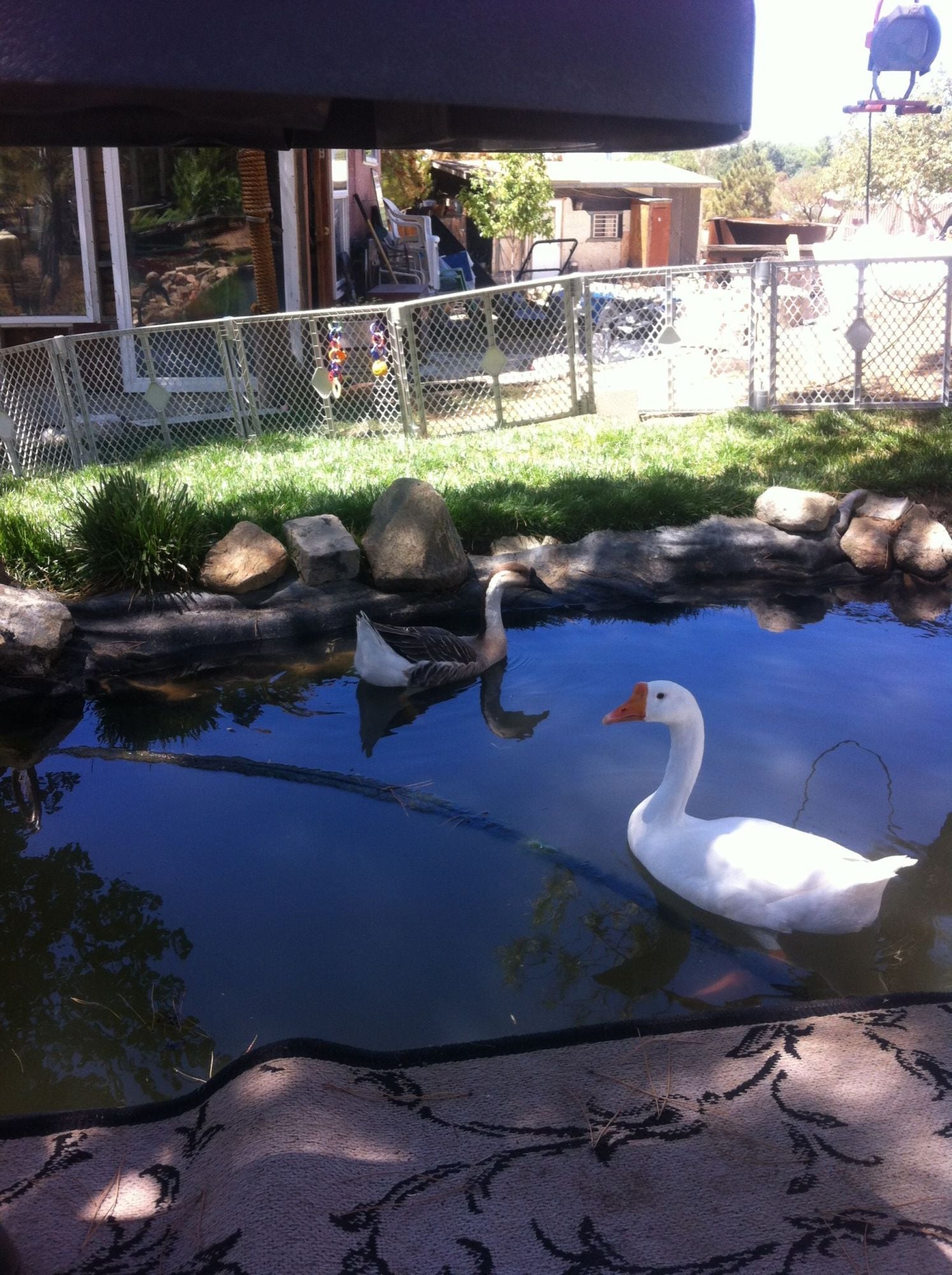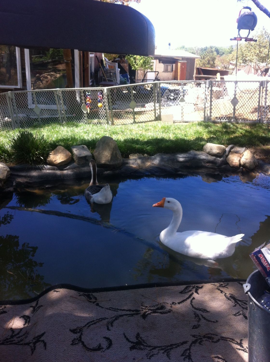 I pick weeds for them in the AM & they stand at the gate & honk like crazy while waiting for me. Then will follow me across the yard as I spread the weeds. Of course then I am expected