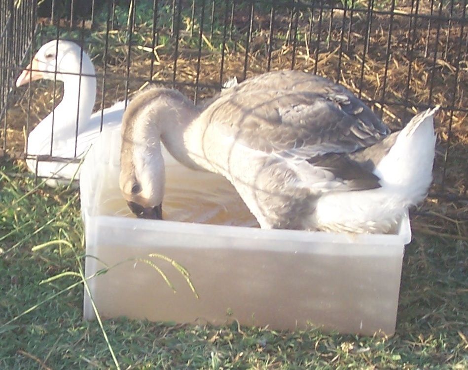 While not as exhuberant as their first bath in the house tub, they did do a little diving and then got out to preen.