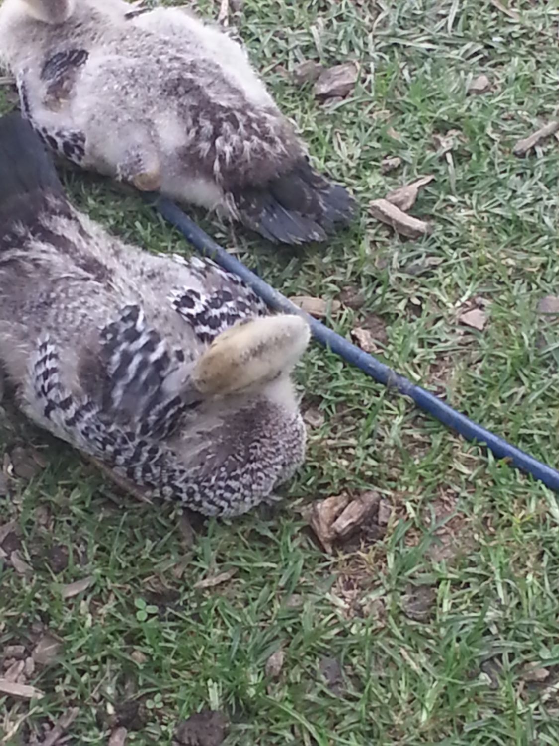 The largest of my three, Mokey, has ended up being my little buddy. It actually likes to be held and cuddled, and every time I tell it 'goose goose goose' it responds back with 'chirp chirp chirp' and looks up at me. When I set it down it does not dash away, but will let me pet it a bit more before slowly ambling away. The other two tolerate me holding them a bit, but then when I go to set them down they are all to happy to scramble off. They all still come when I call them and take treats from my hand though. I make it a point to always call them to their breakfast and dinner bowl, and to give treats from hand daily as I don't want them to become too anti-social or standoffish as they mature and mate bond. <--- when I was young I helped on a farm that had non-handraised geese, and doing anything hands on with them was a serious chore, and usually ended up being both mentally and physically traumatic for both the goose and the handler. LOL