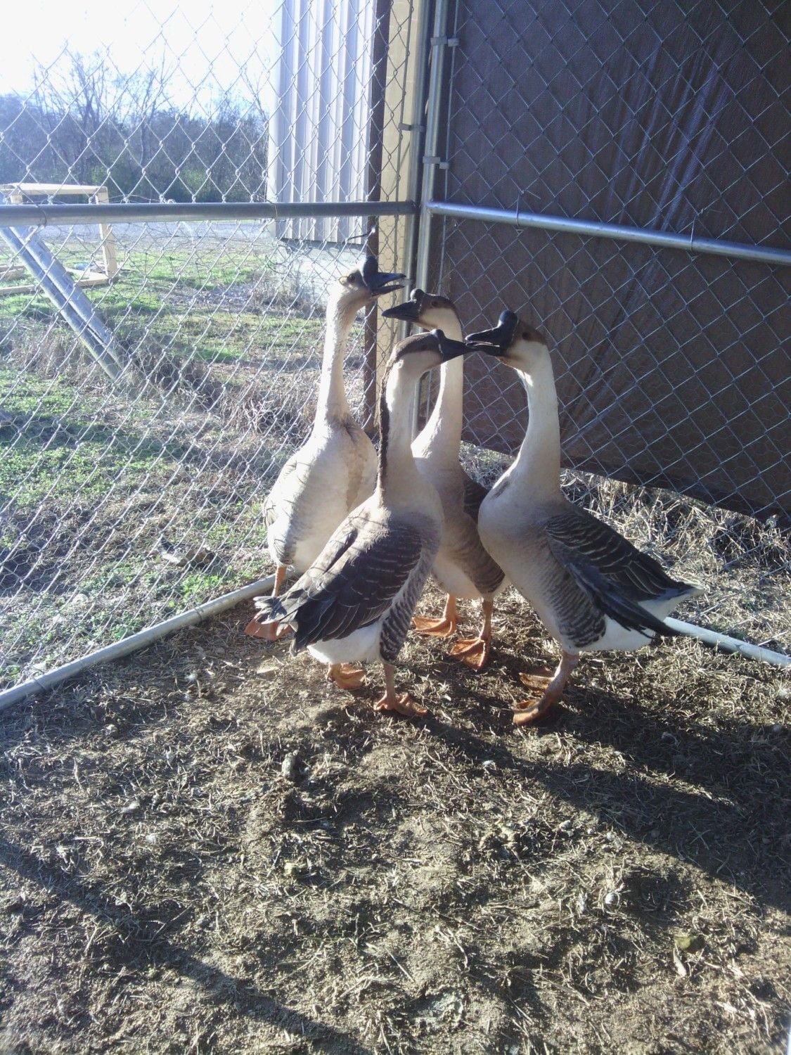 [CONTENTEMBED=/t/533413/the-african-and-chinese-goose-thread/2400#post_16429384 layout=inline]Well, my gander is just starting to act like a gander! He hasn't payed any special attention to his mate, but he is holding his head really high and arching his neck! Also, he walks sideways towards me and puts his head right next to the ground, then kind of shakes it. What does that mean?[/CONTENTEMBED]