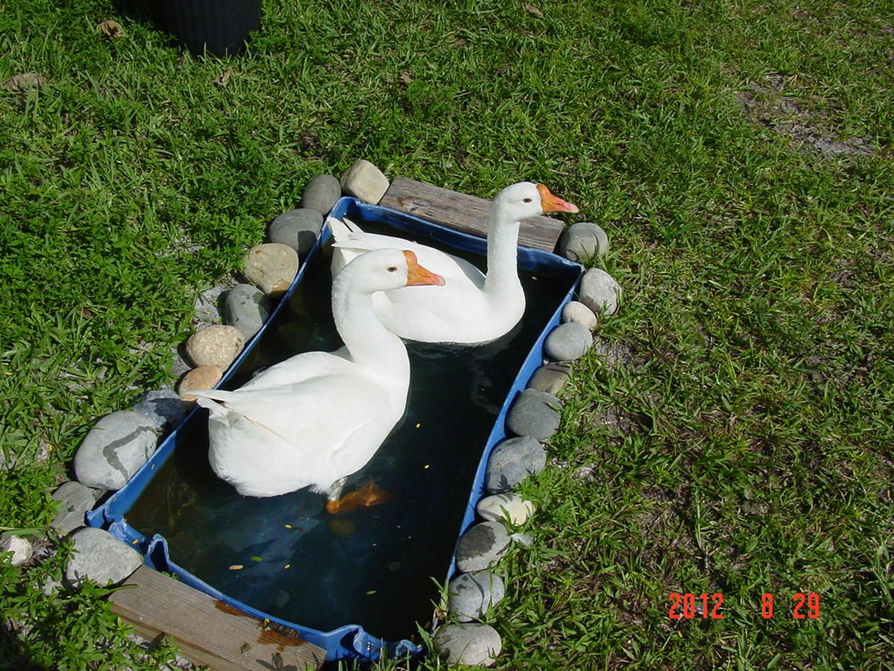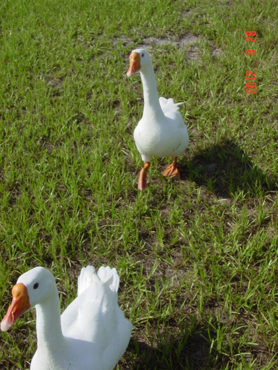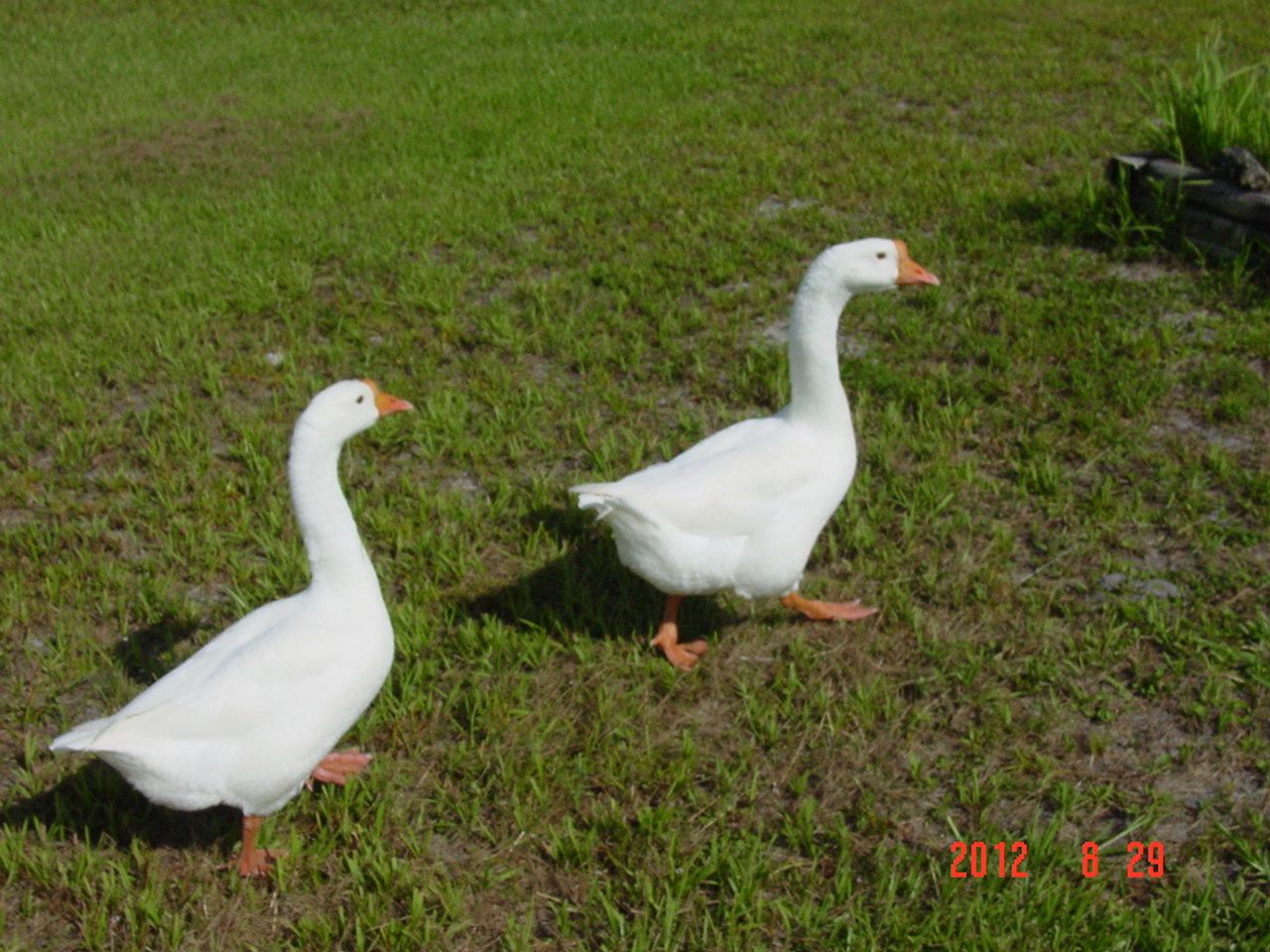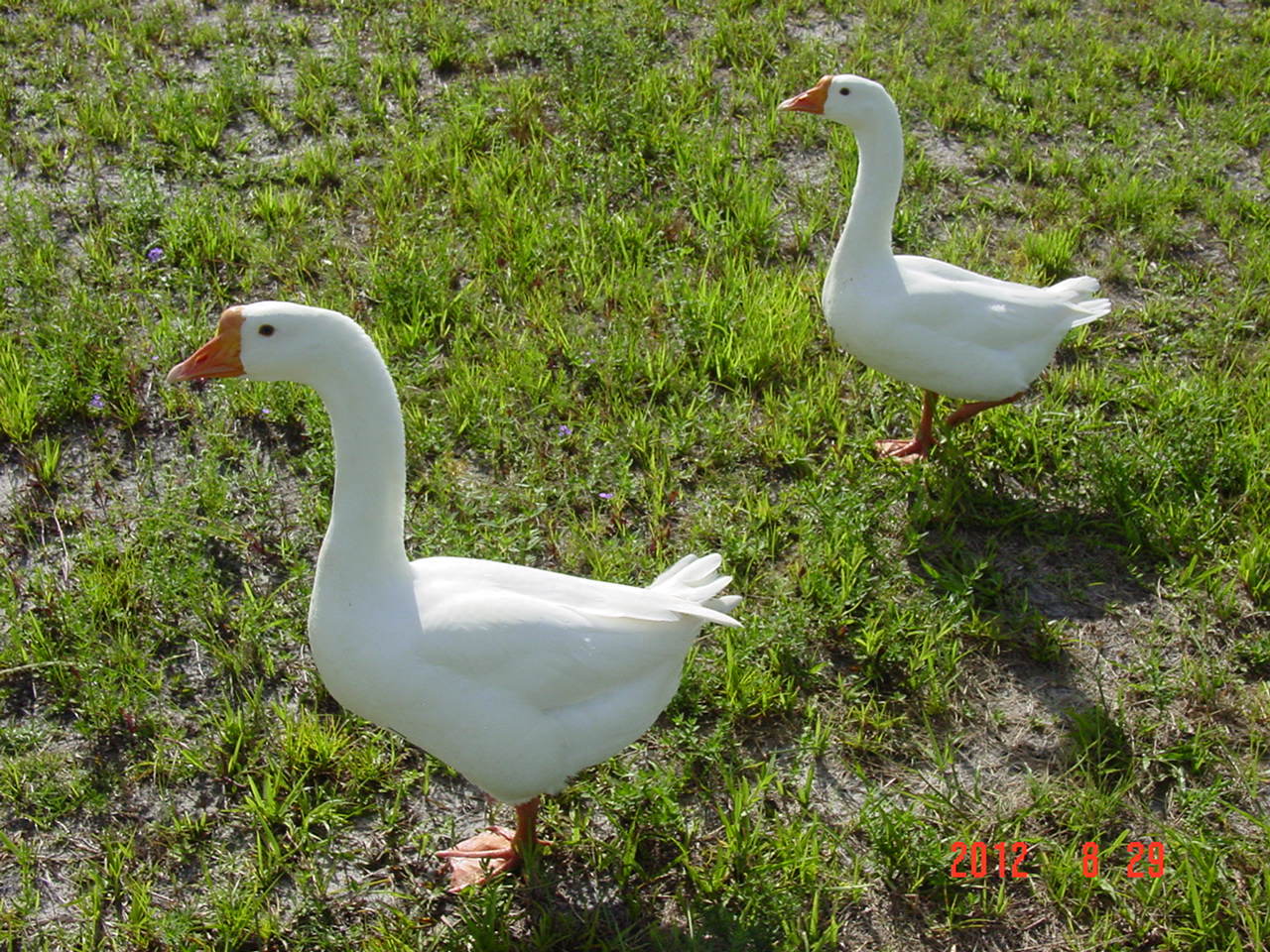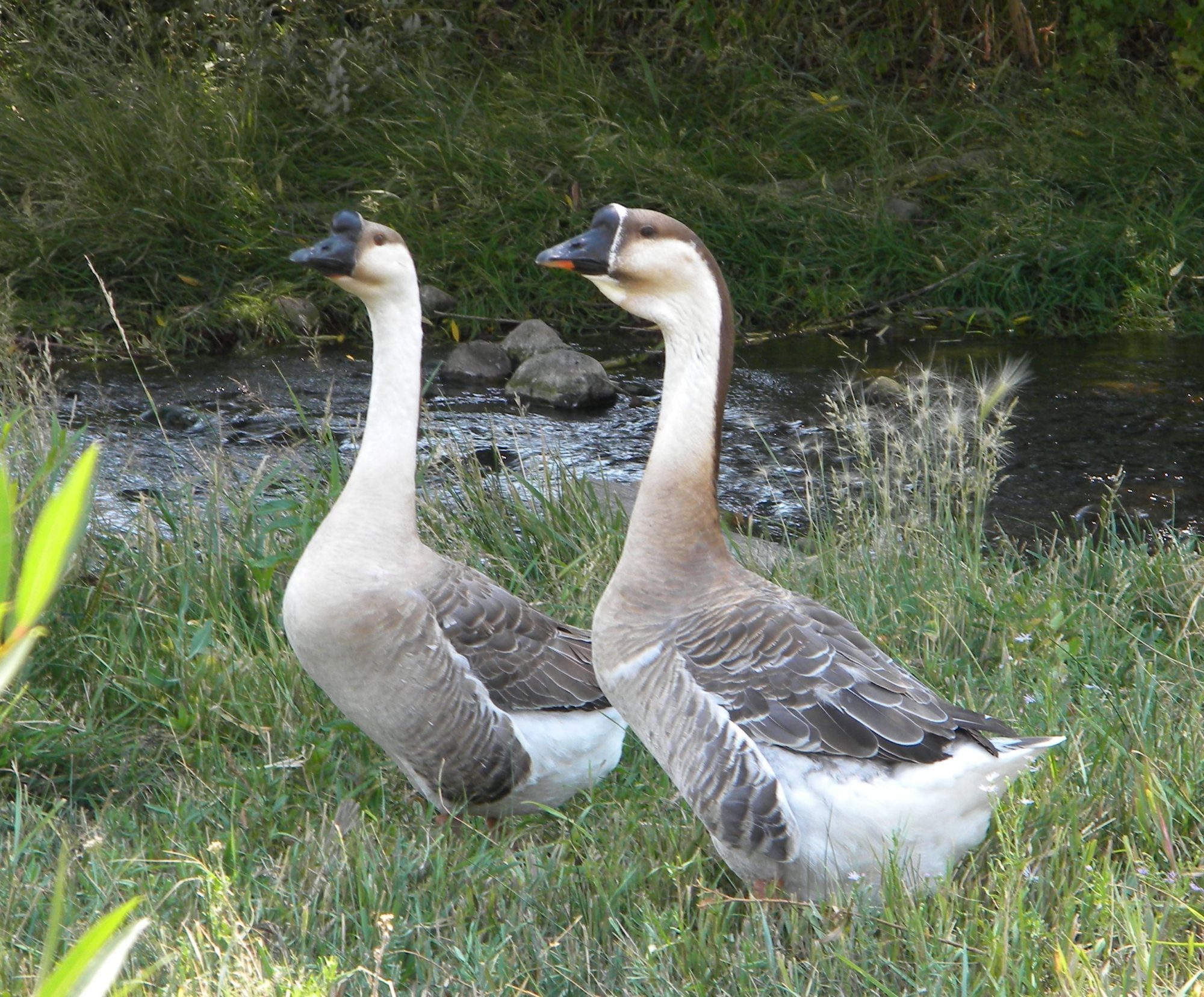 Sure are pretty.Someone had asked that I post pics of my chinese and africans goslings for comparison. Here is a close up, kind of. The left is the chinese who is about 11 weeks old and one of the africans that is 1 week younger. The african is about the same size as the chinese, maybe a bit bigger but the knob is already growing on the chinese.