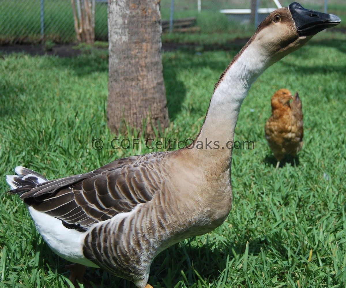 Our male/females must be opposite how they 'should' be. Sarah is smaller, more aggressive and quieter. Chuck is larger, less aggressive and much louder. It's Sarah that attacks little kids or animals it doesn't like. It's Sarah that bosses the ducks around- Not Chuck. BUT if the ducks are mating it annoys Chuck to no end. He will yank the drake off the duck and chase them away. We call them them Geese Police. LOL