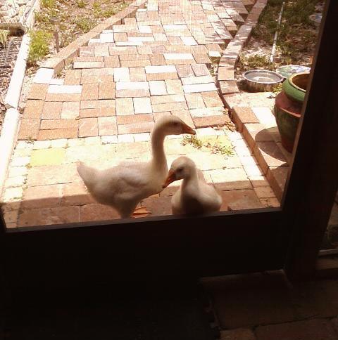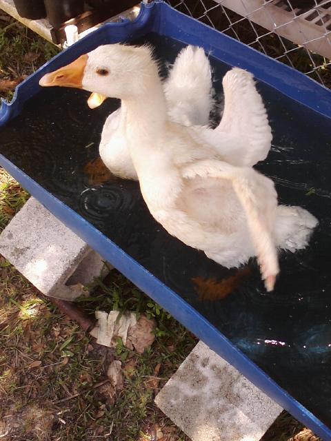 We have plans on making a pond by the chicken house just for the waterfowl but for now we are going to put a kiddie pool out there. At the moment they are with 8 week old chicks for safety reasons, they will soon be joining the older ones including three ducks.