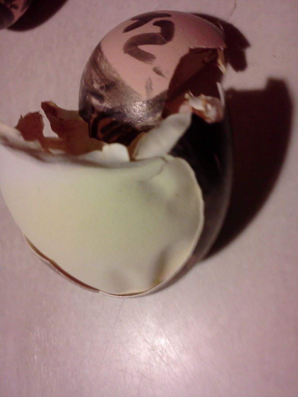 )so will talk to my family my nephew decided to do is own test. well being a boy he went all out. one egg is sharpie and one is dry eraser marker. Both hatched out great. one pic you can see there is no marker bleeding though the egg shell. Egg were but in a sportsman bator and 21 day later go to beautiful chicks. Named sharpie and easier.