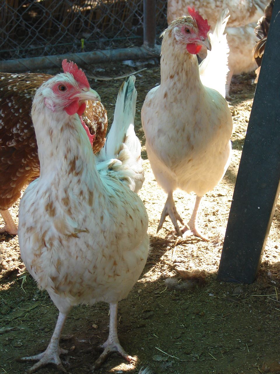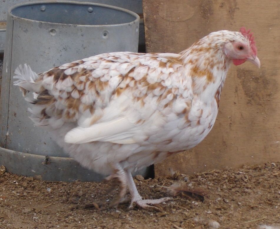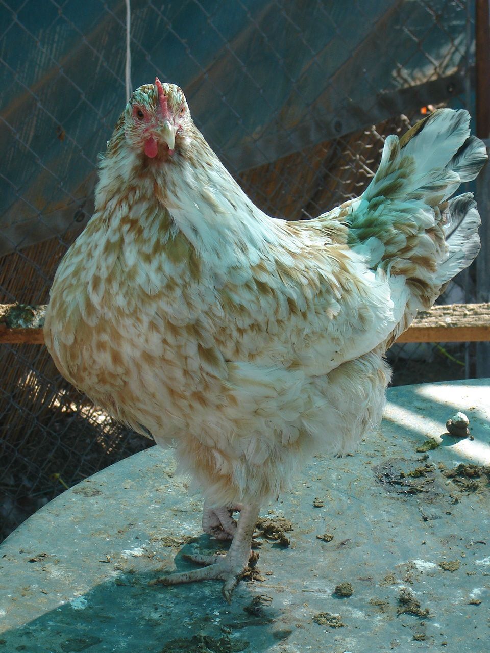 Another breed that carries this color is Buff Brahma, but they have different combs, feathery legs, and short stubby tails. So, they could be used for the size and color (and yellow legs) but would require breeding out a ton of other traits. The Buff Sussex is much closer to our final goal, as they only need spots and yellow legs to work as Alohas.