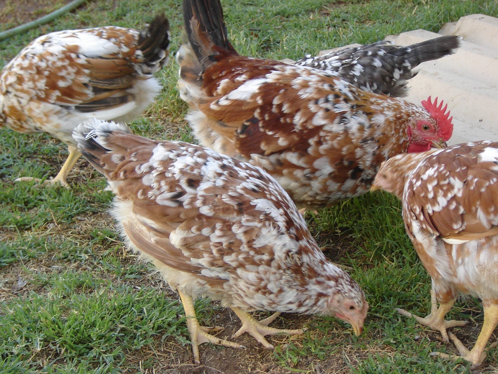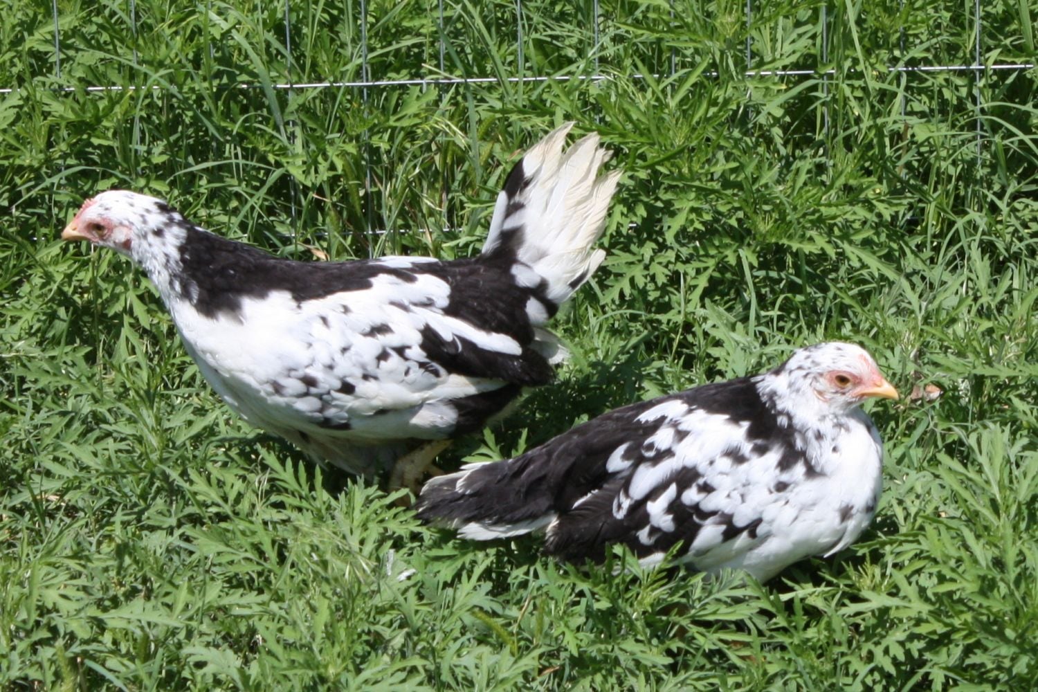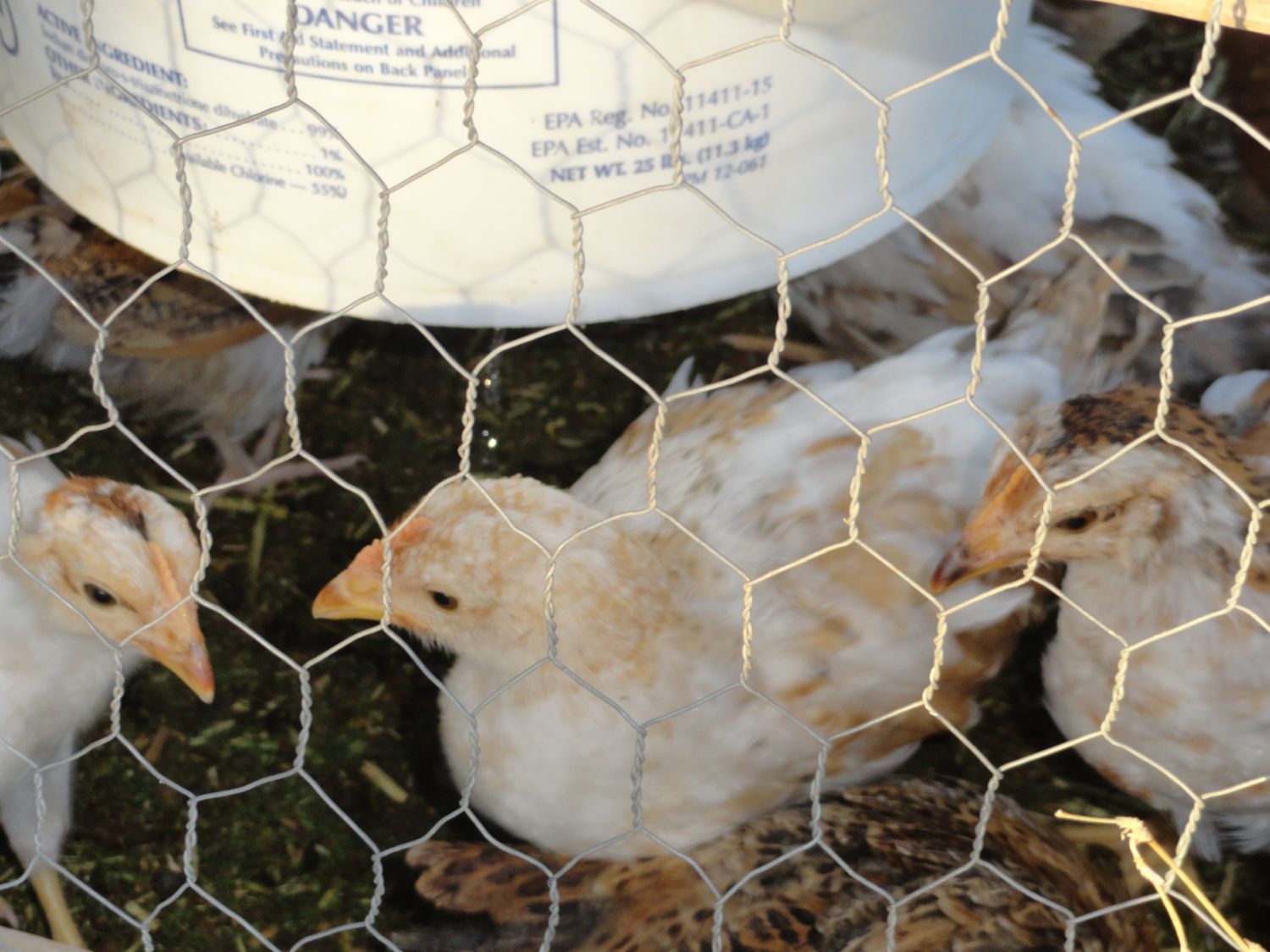These look exactly like the Exchequer chicks that I had before. They used to call this color "pied" and the Sussex teeny spots "mottled" but now they say both are the same gene? I don't know, though, that doesn't explain why the Exchequer spotting is so bold compared to the Susssex.