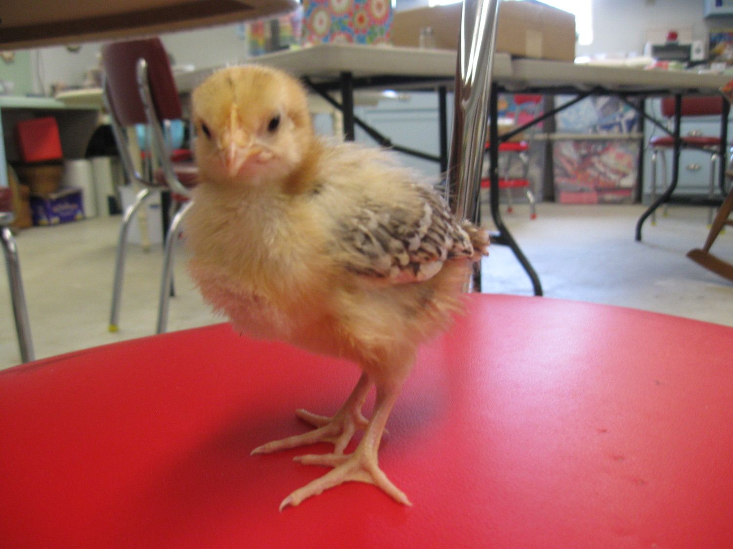 Sommer, Get a load of these Speckled Sussex I just got from Tony Albritton. It's really hot here so I put them in my gigantic craftroom with the A/C. It's a part of DH's shop which he was so generous to share with me. I have a bunny and chicks in there right along with all my crafty stuff. So now it's the perfect chicken lady hang out!