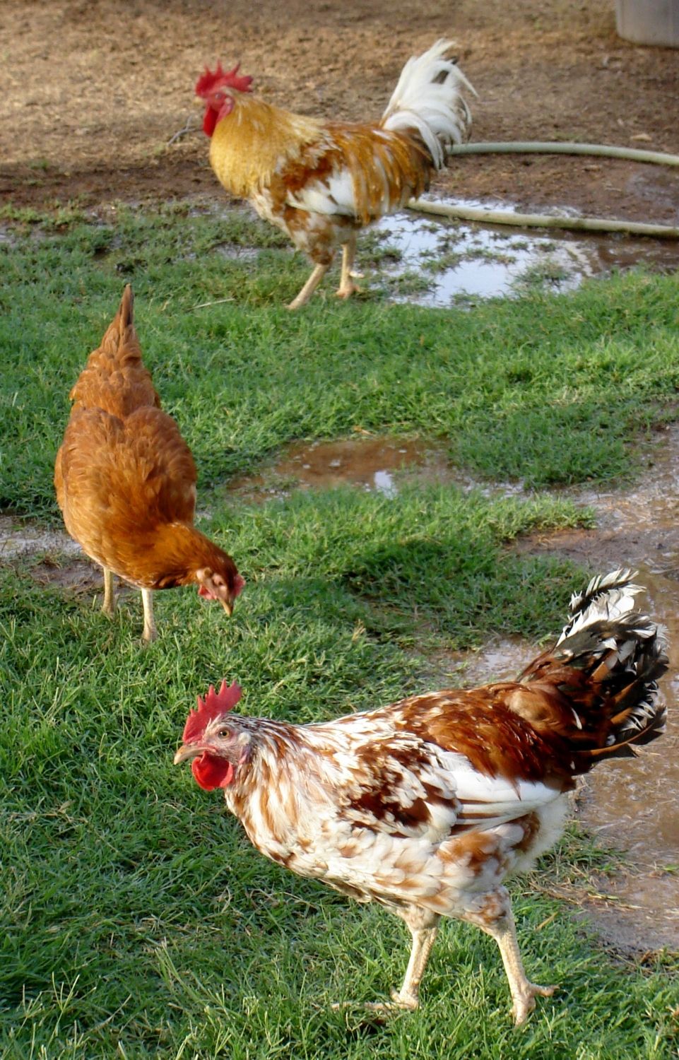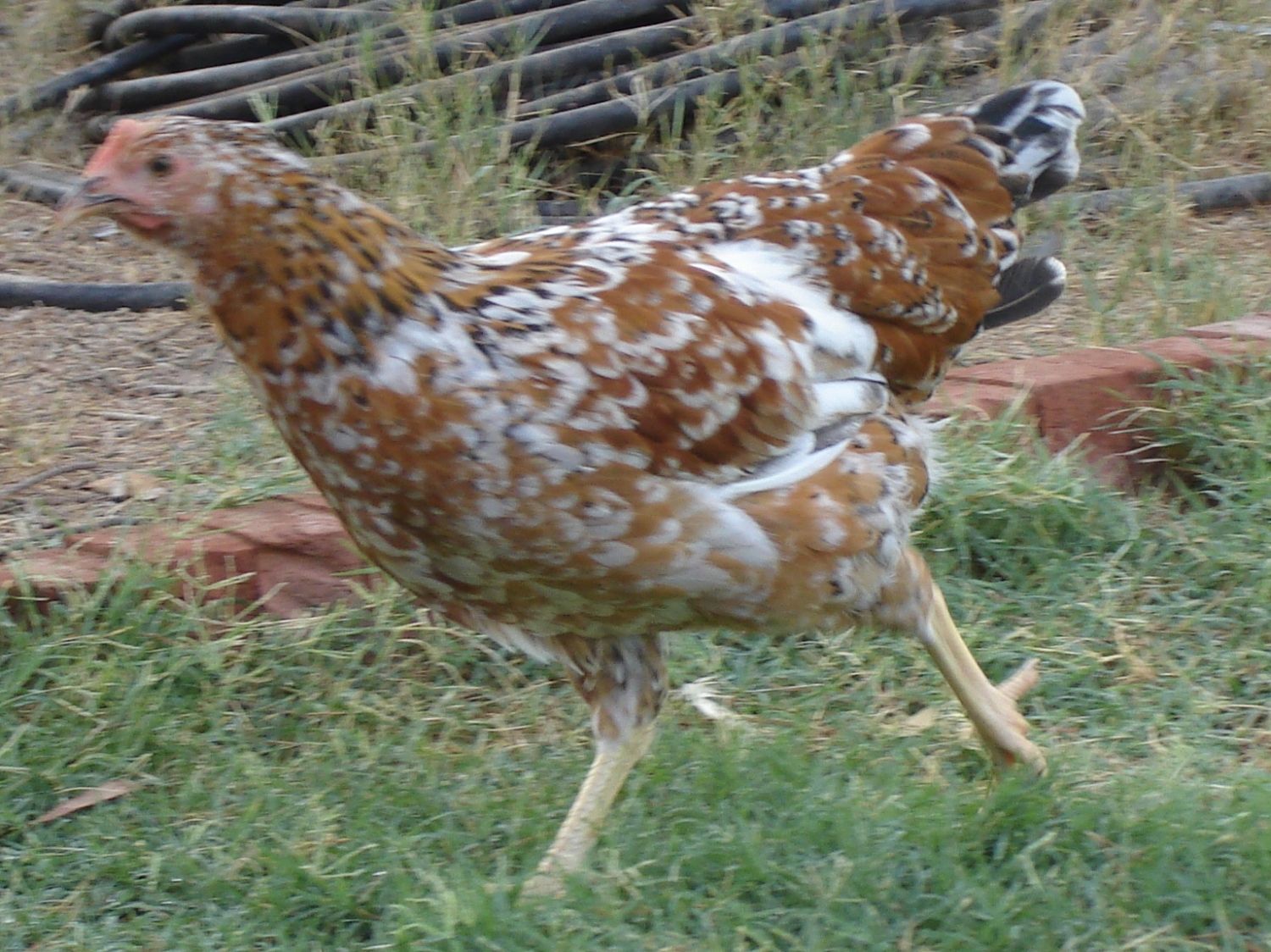 In fact, I am thinking he would be PERFECT to breed to the hatchery NHR's if he keeps this much white. He could also be a good rooster to introduce to pure or part Swedish Flower hens, to improve the amount of white on the offspring.