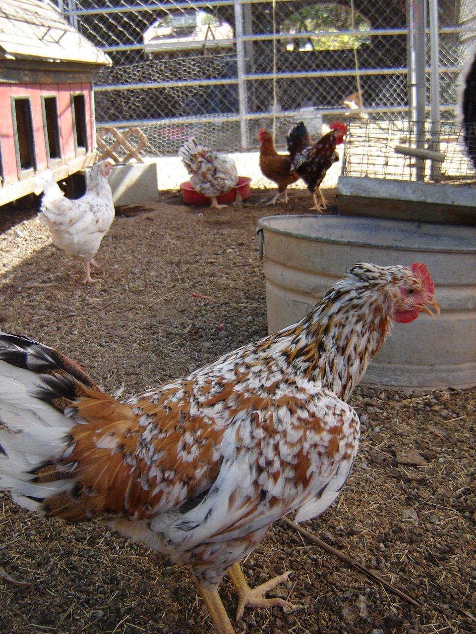 This roo is spectacular, if I was breeding for spotted Naked Necks! He has gorgeous yellow legs, is very tall, and at this point he's showing a tremendous amount of white.