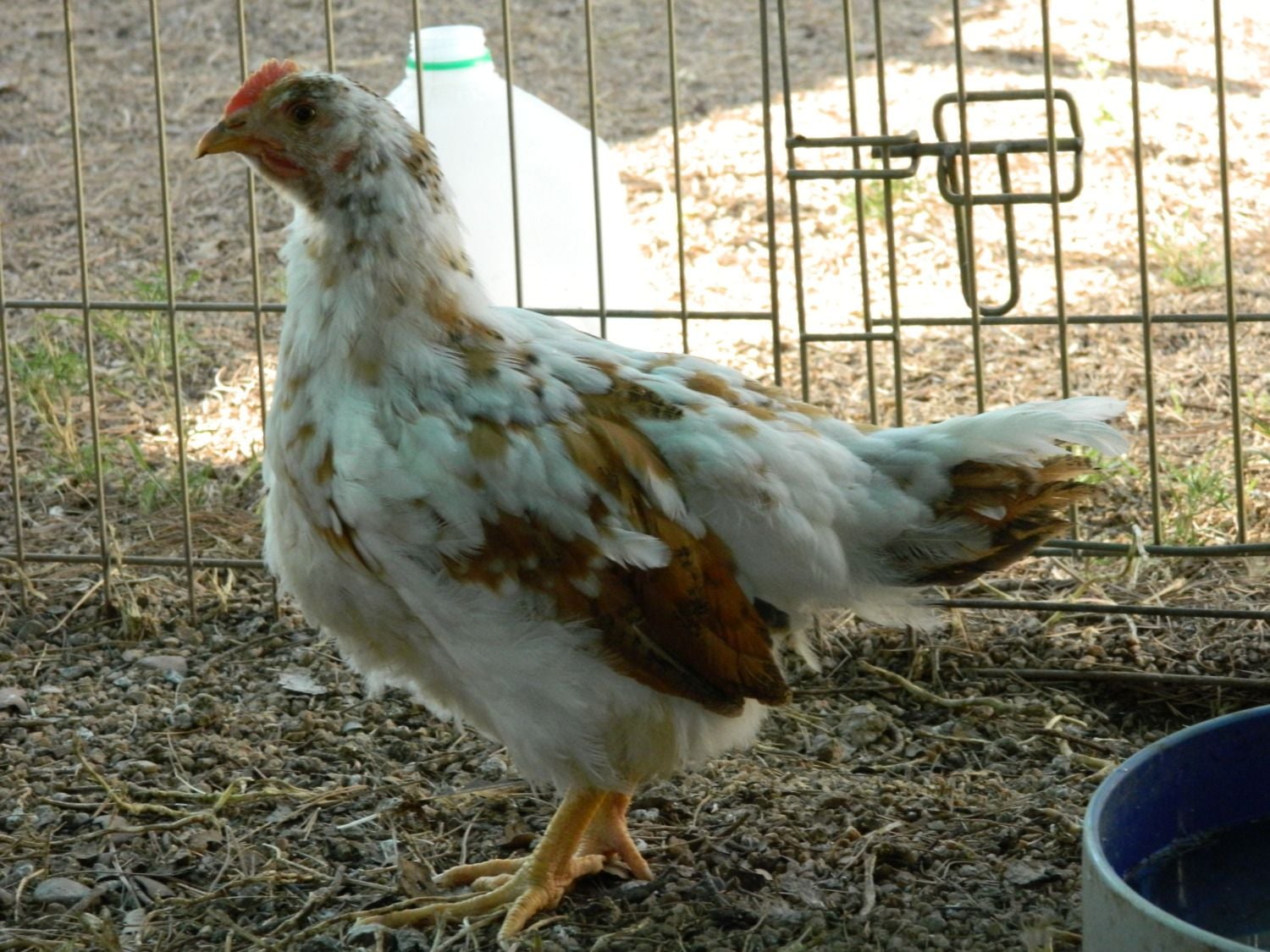 And I have one Buff Sussex who shows a trace of Mottling. Big body, yes, but pink legs, smallish comb, stubby tail - all traits I'm not wanting in Alohas?