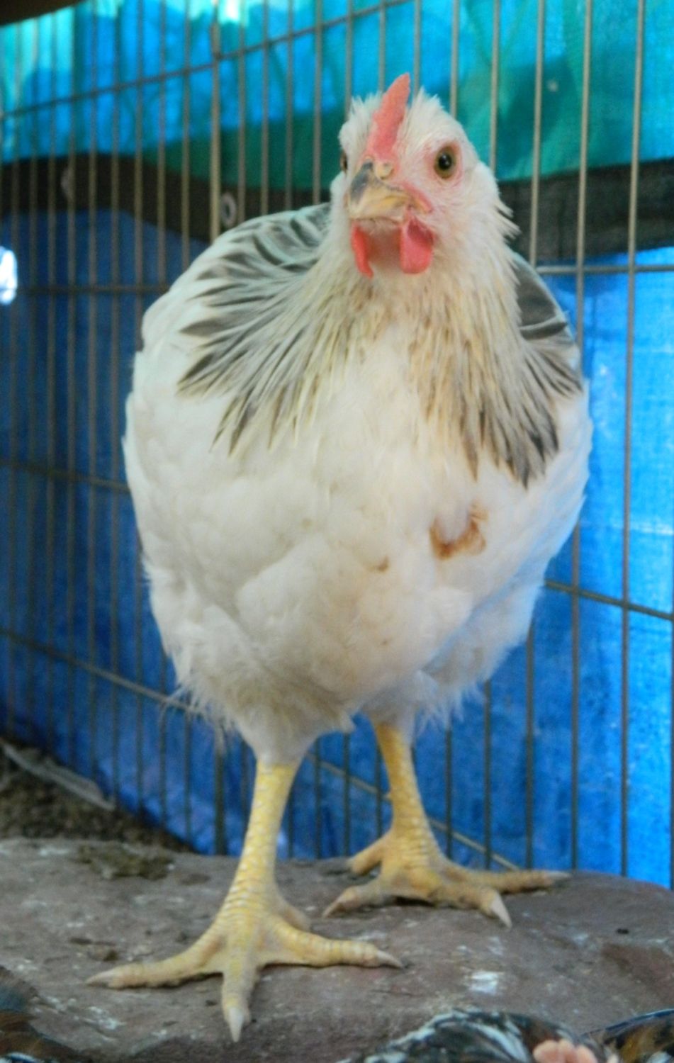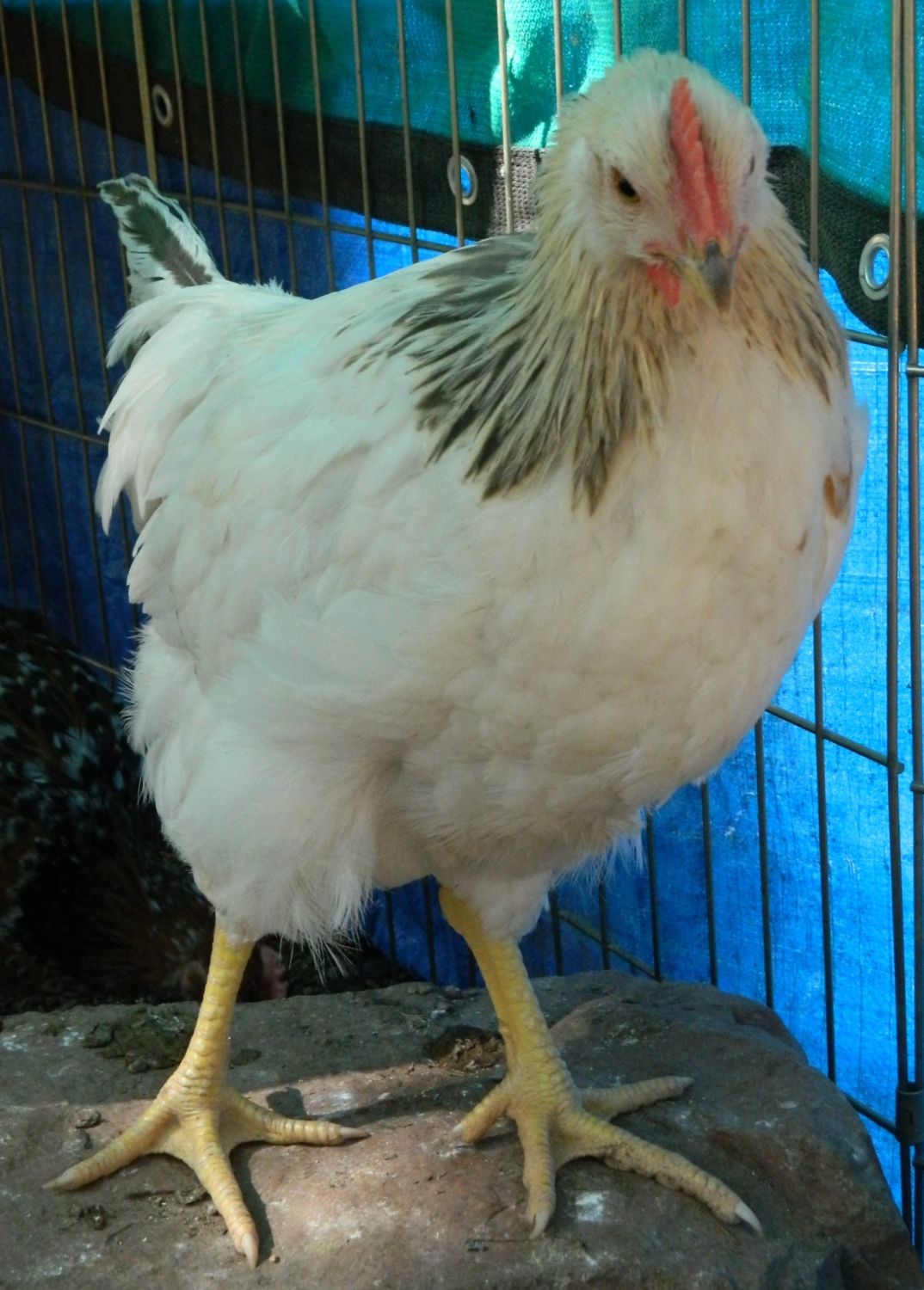 The rooster that I liked a lot - who was BIG but not as big as the silvery-white guy and had spotting and yellow legs - he is still looking good! I just couldn't get a decent photo him this session, darn it. Will try again later. A few were "posing" for me and others were hiding. LOL.