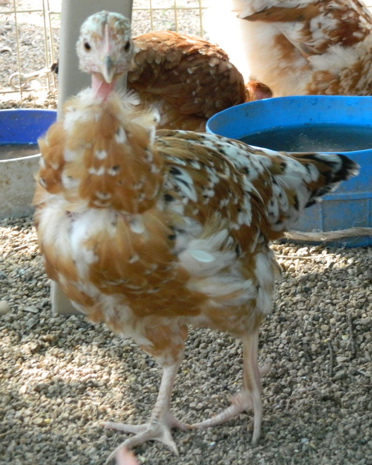 He still towers above the other Alohas. If he can just stay alive in the hot summer, I can't wait to cross him to my small, super-spotty girls and try to see if he can produce chicks that inherit some of his size and nice thick type - but with the spotty Aloha color.