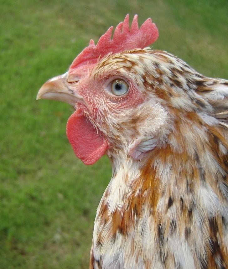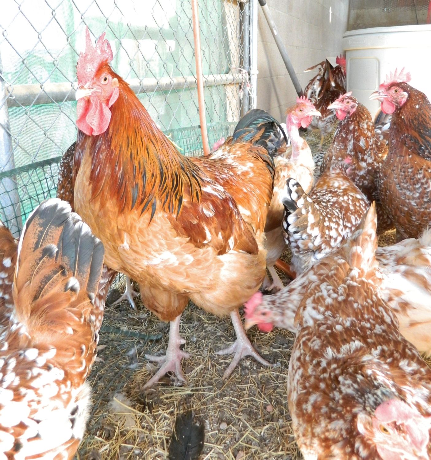 Then I also have THIS hen who is 1/2 Hatchery NHR and 1/2 colorful Aloha: