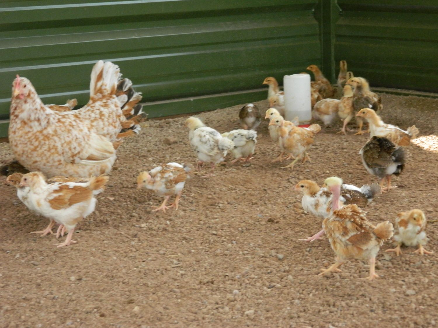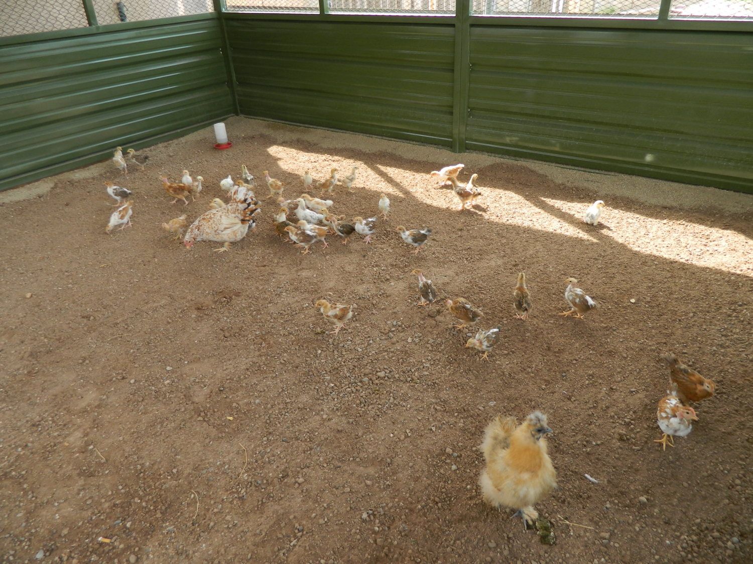 I turned all the peeps loose in there. I have about 30 to 35 new peeps that I'm growing out. Random mix - I kept the Naked Neck babies and then grabbed whatever other random chicks. Any that looked big and fat and robust.