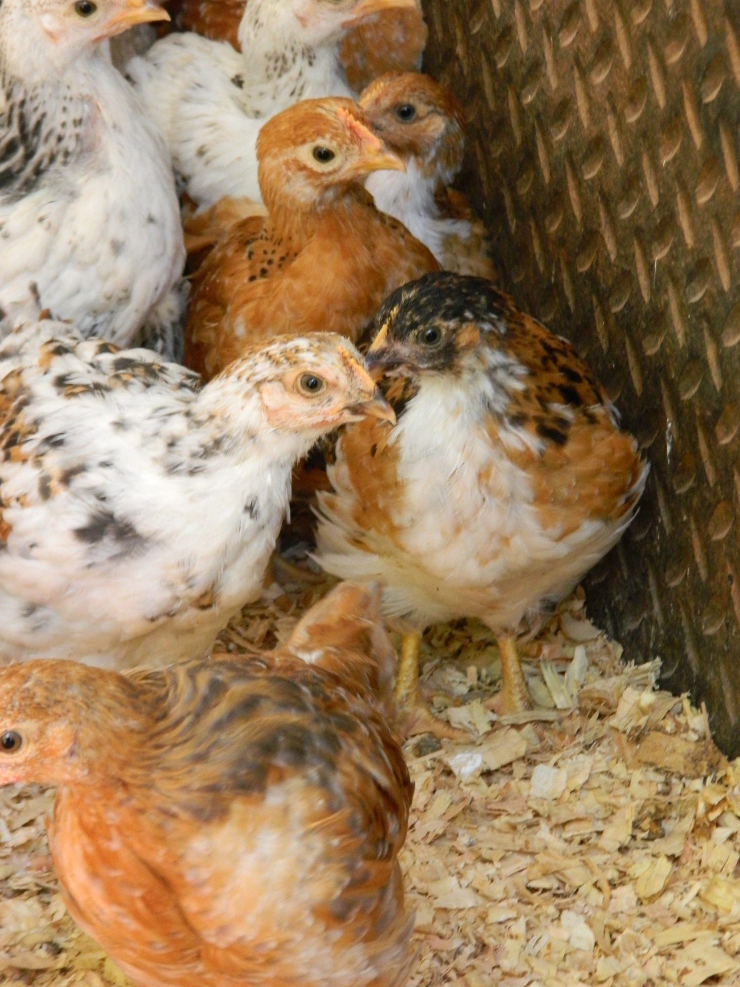 On the far left, is the one chick that REALLY stands out - yellow legs and totally spotty!!!