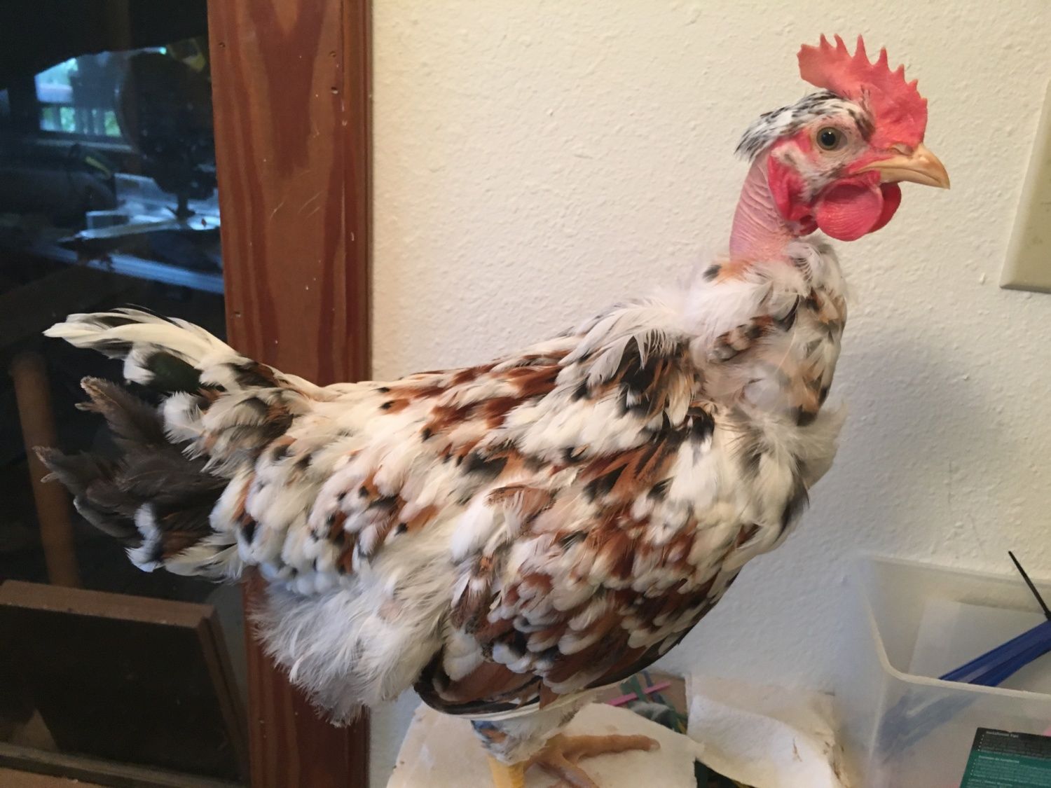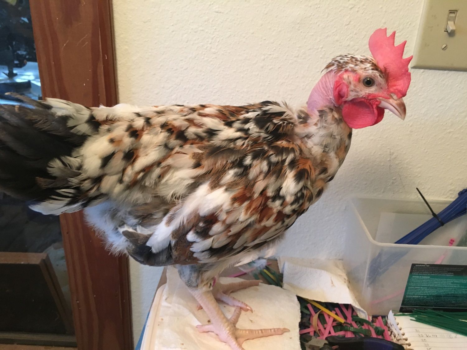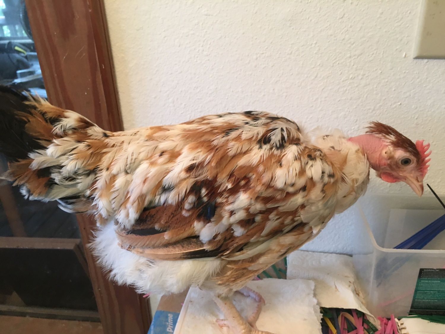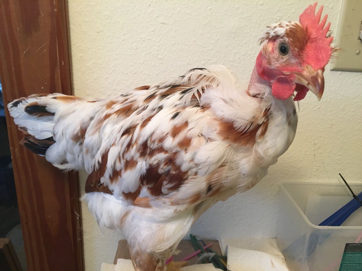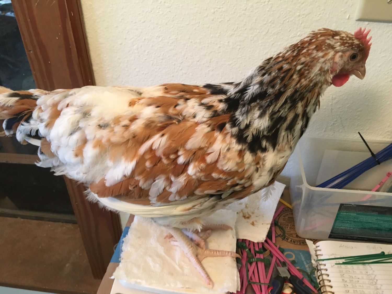 Unfortunately, he was so massive in body size, that he broke his leg leaping down from a very tall roost. It started to mend, and then re-broke and he passed. My "barn chickens" roost in the rafters, and that hasn't been a problem with the Alohas, as they are Leghorn weight, but this boy and his Dad were both very heavy bodied "meaty" types and both broke their legs from the jump.