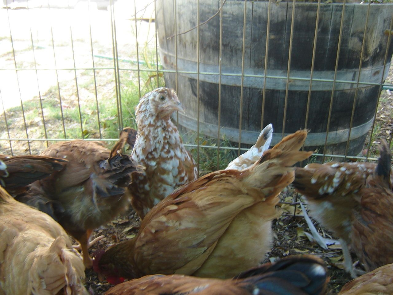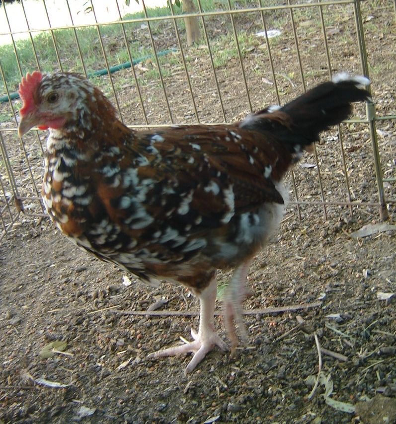 The second thought is that it has something to do with the out-crossing? Maybe it is related to the fact that one parent (Cheeto) has no spots at all, and that if I put the fading-spot roos in with the pure Alohas, pure Sussex, or half-Sussex hens, we will see "permanent" spots in the next generation.