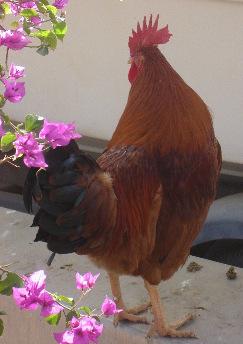 Check out that stance. Is it just me or is this a really handsome rooster? Look at that tail. This guy is all about the girls. He looks after them, scolds them if they bicker, calls them to the coop if he thinks something's not right and roosts on the very top roost, watching out the window for any trouble. He's friendly enough but on a mission!