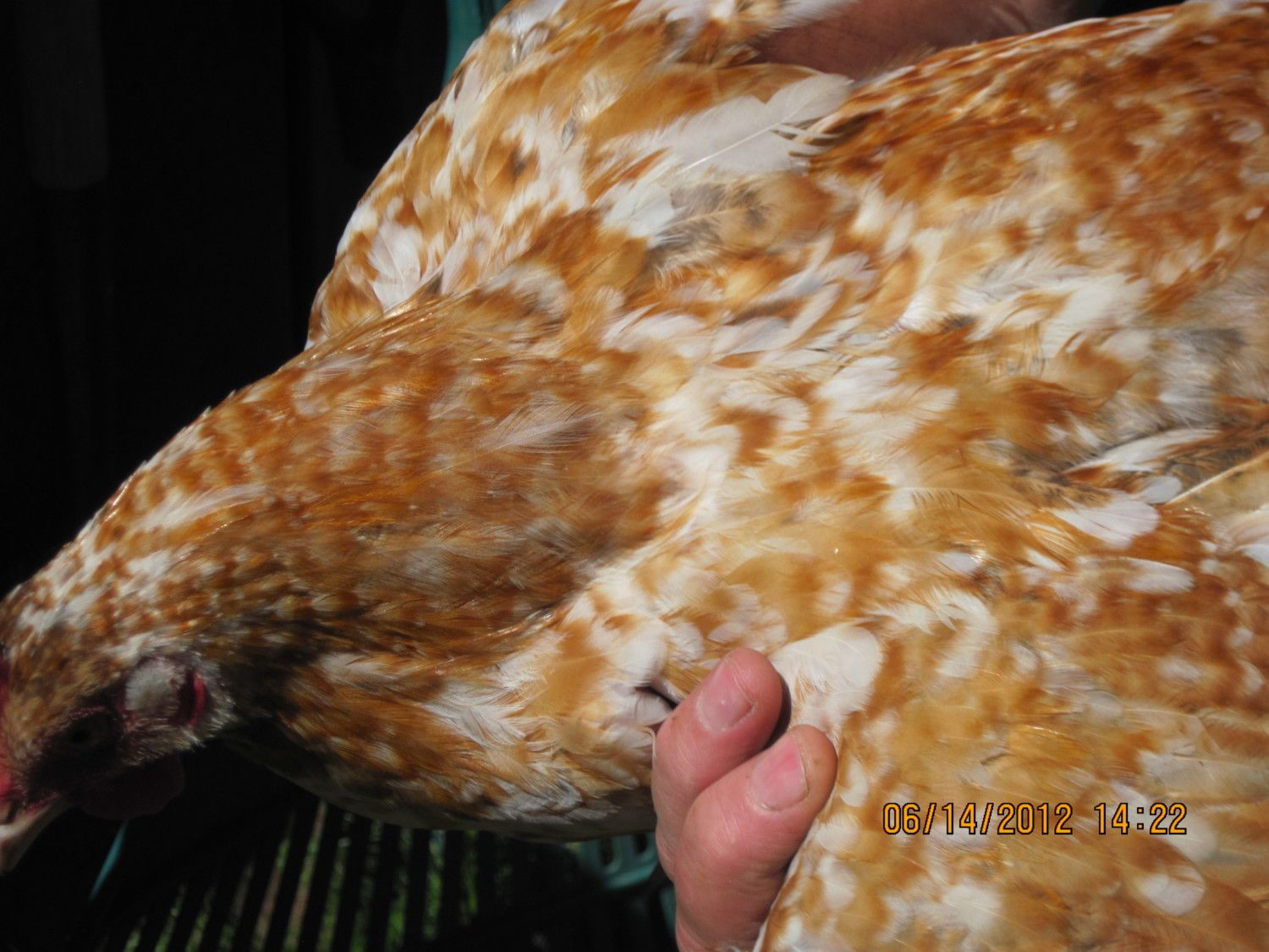 With all the "other stuff" that we have to worry about - leg color, plumage color, improving size, etc, we really don't need to get distracted with crests, or fluffy legs, or puffy cheeks, or other stuff like that. If somebody likes mottled birds with crests, there is the Tolbunt and the crested Swedish. In the long run, once we get size/type/color down, I'd rather folks focus on breeding Alohas to be big and healthy and strong, or outcross with something that is an amazing egg layer to improve productivity, rather than mess around with crests.