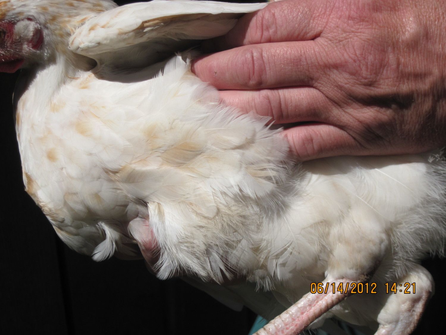 #5 Nice sized bird with some nice white lacing and black flecks on neck. Some black on wings and tail, dark grey underfeathers.