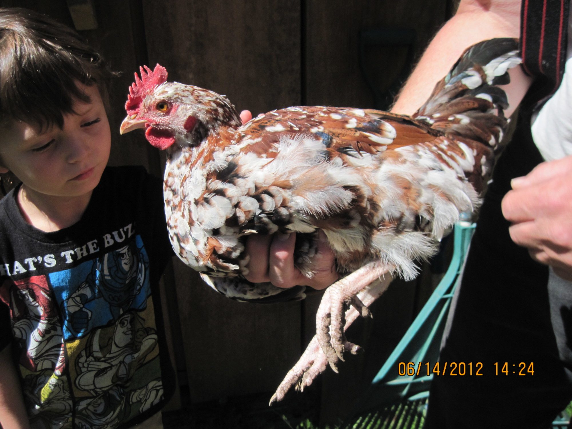 #5 I have about four other hens of similar coloring but they have less or no white and one has puff cheeks. I like this one and think she would be nice crossed with one of my Buff Rock roos to lighten her up?