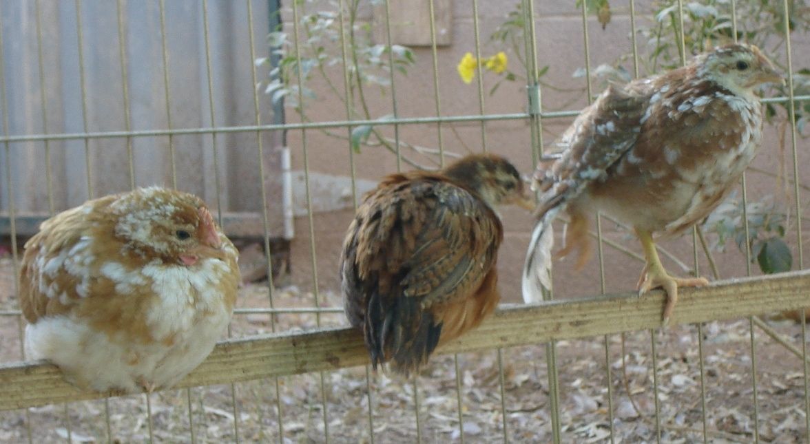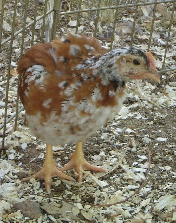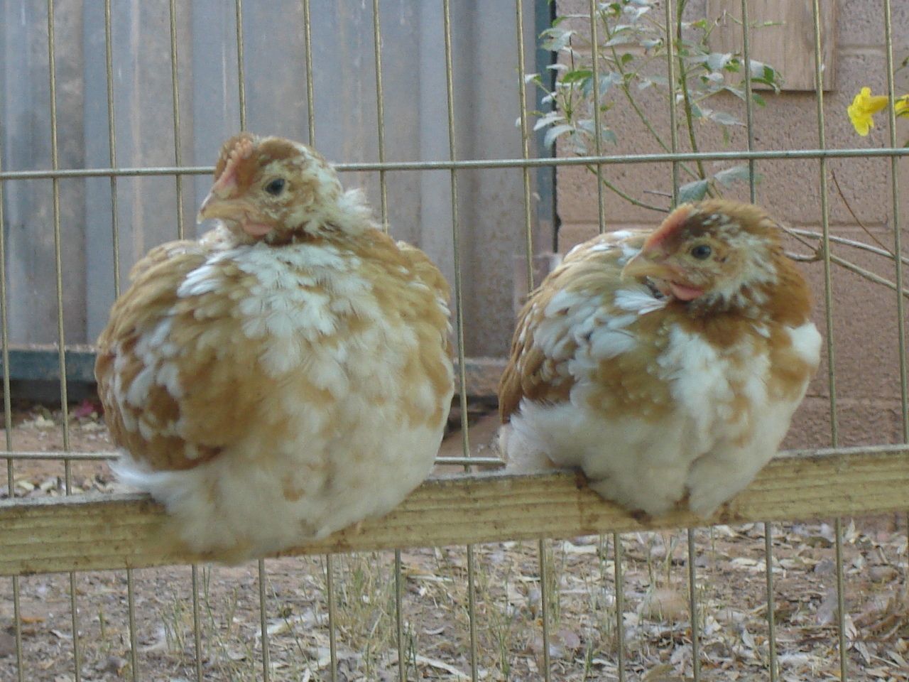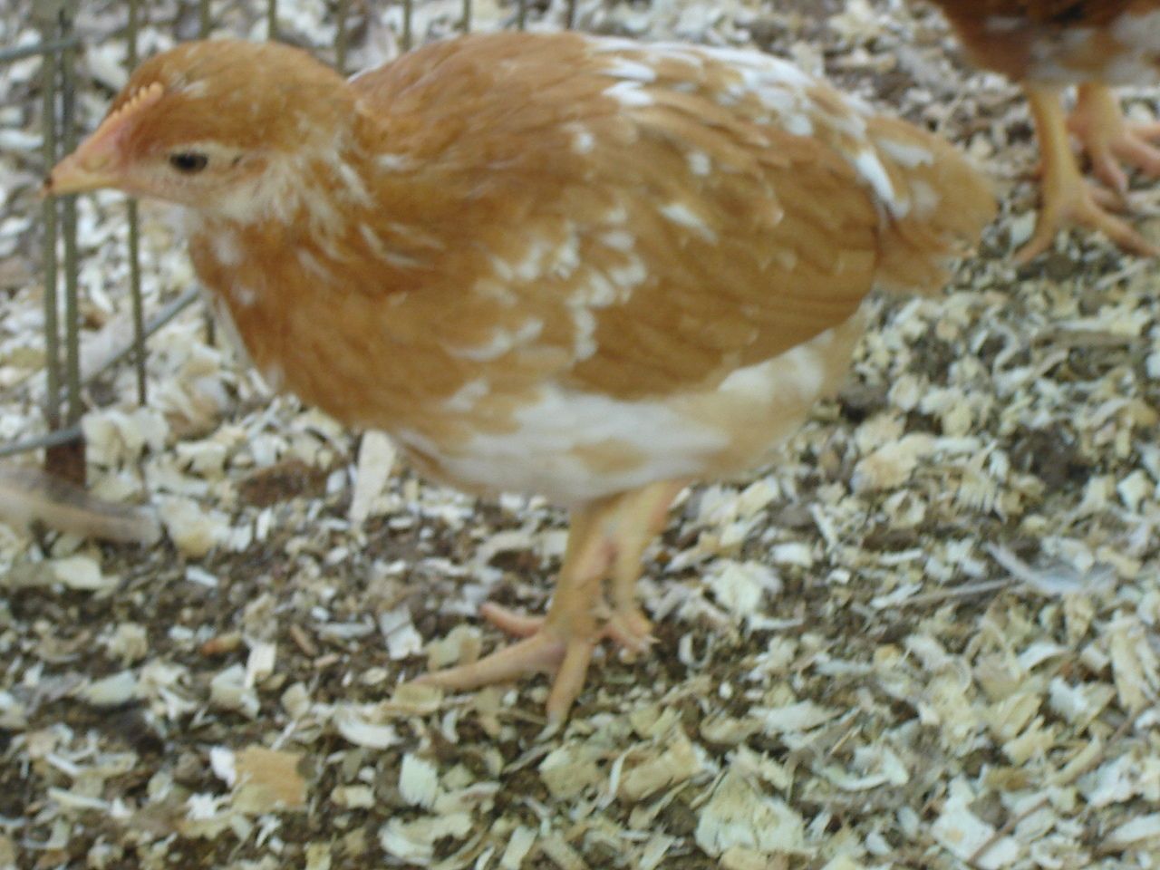 I have one large looking possible hen that is 3 weeks younger. She is already larger than he is so I am pleased! I'll get pictures once they lose their ratty betwixt chick/juvenile feathering. She looks to orange/pumpkin coloured with white spots.