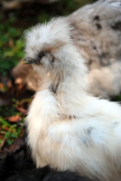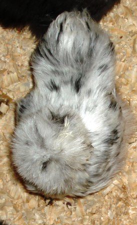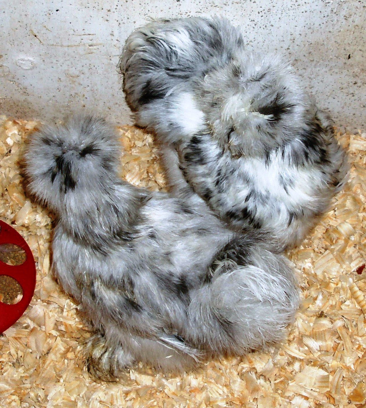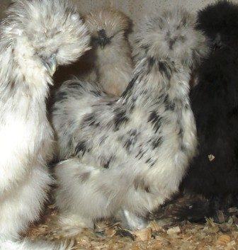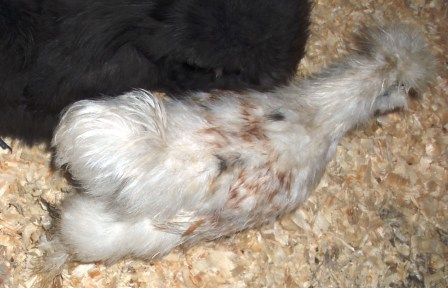 not the greatest pic light is dim inmy brooder room will take her outside if it is nice tomorrow for better pic's but she has definate white spots on either side of head and a couple other tiny spots!