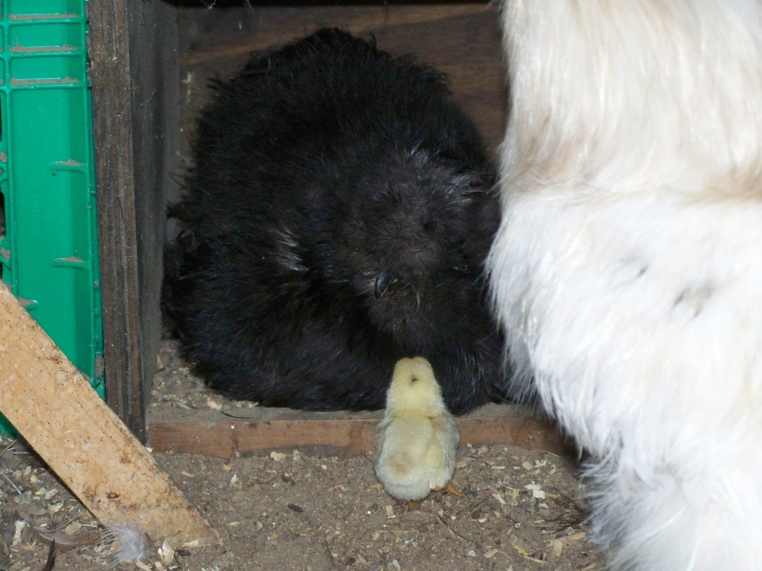 Meanwhile...one hen is broody, the other is sitting on the roost watching her broody sister.![]()