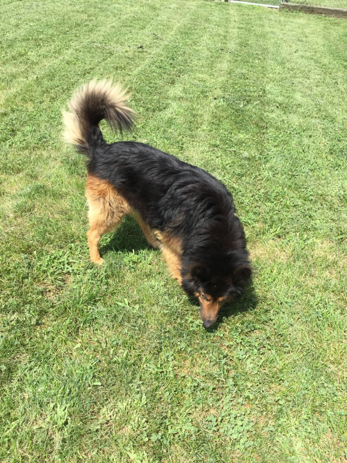 Buddy, the first time I got to let him out in the run. He is a real sweetie, obedient and friendly and just all around a good dog.