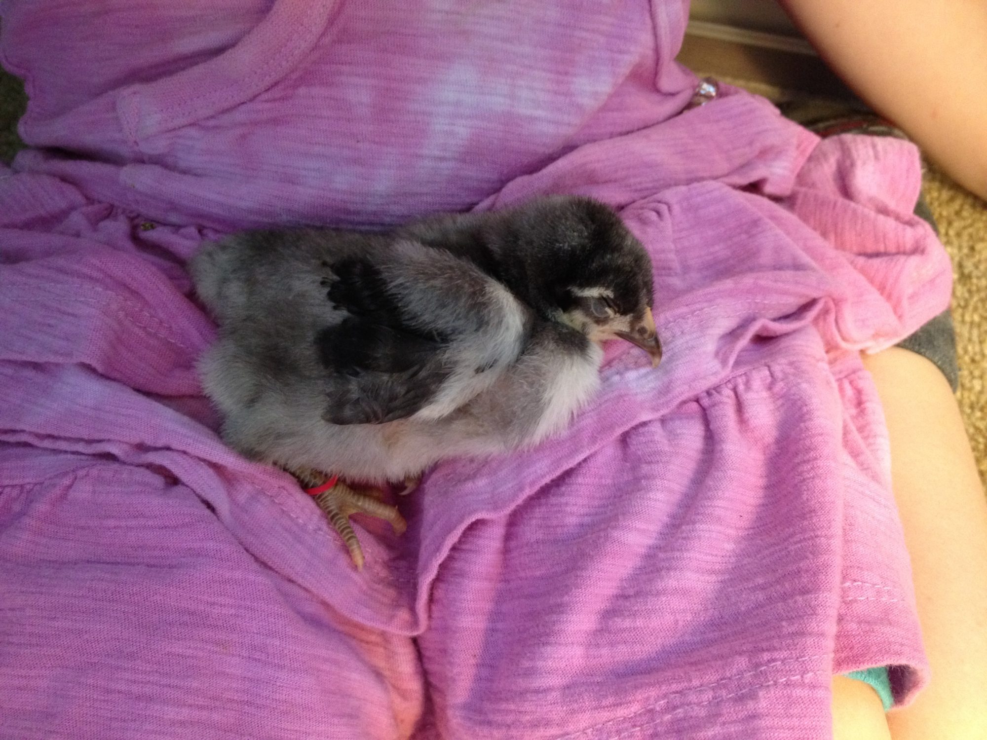They are from Brandi's Fancy Feathers in Louisiana. Managed to snap just a few pictures today. One fell asleep on my daughter's lap.