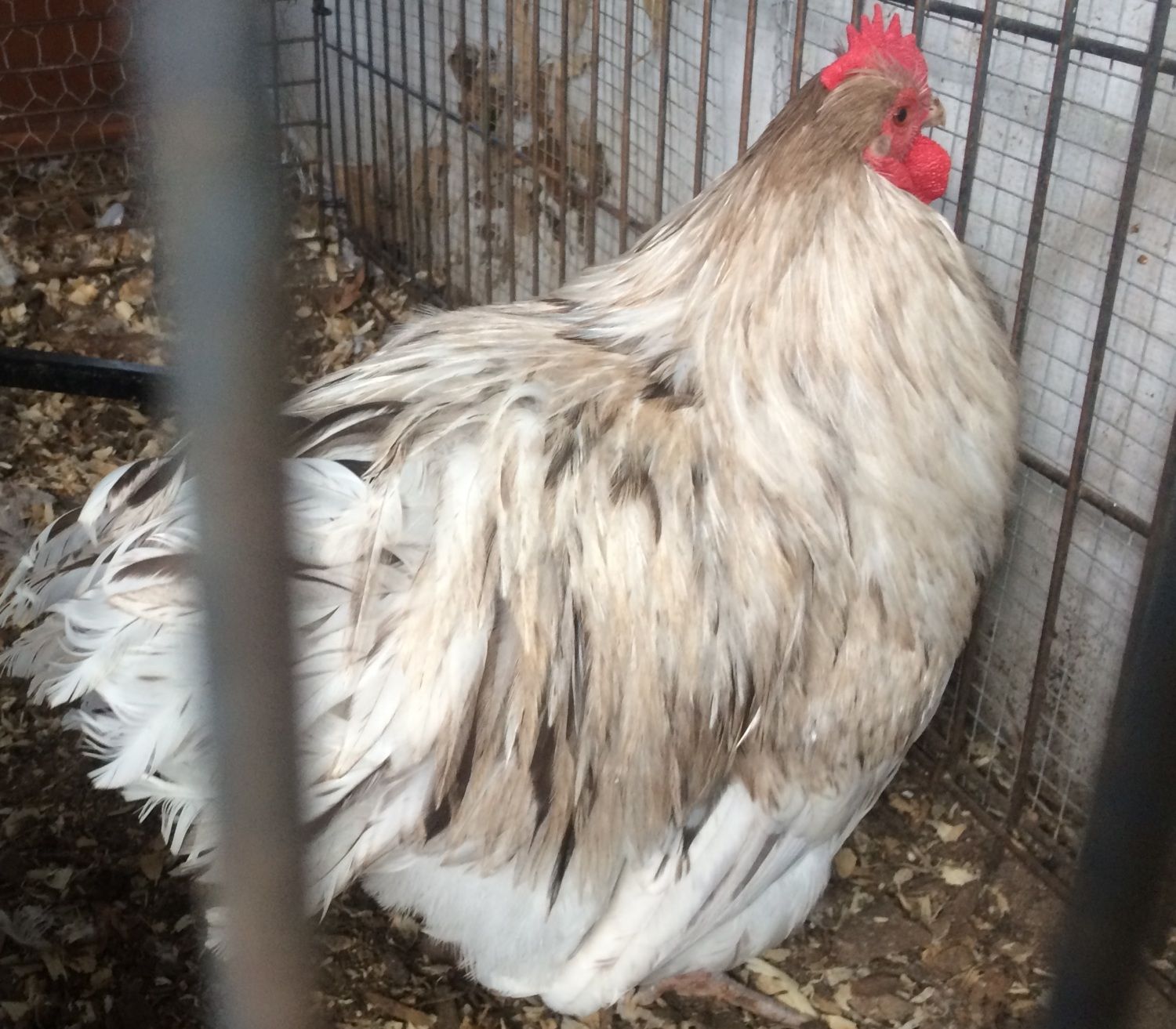 pic below: What do you guys think? Does it look like a male head-spot? (I believe that combo makes a sex-link, so only a male offspring could get the barring from the mother.)