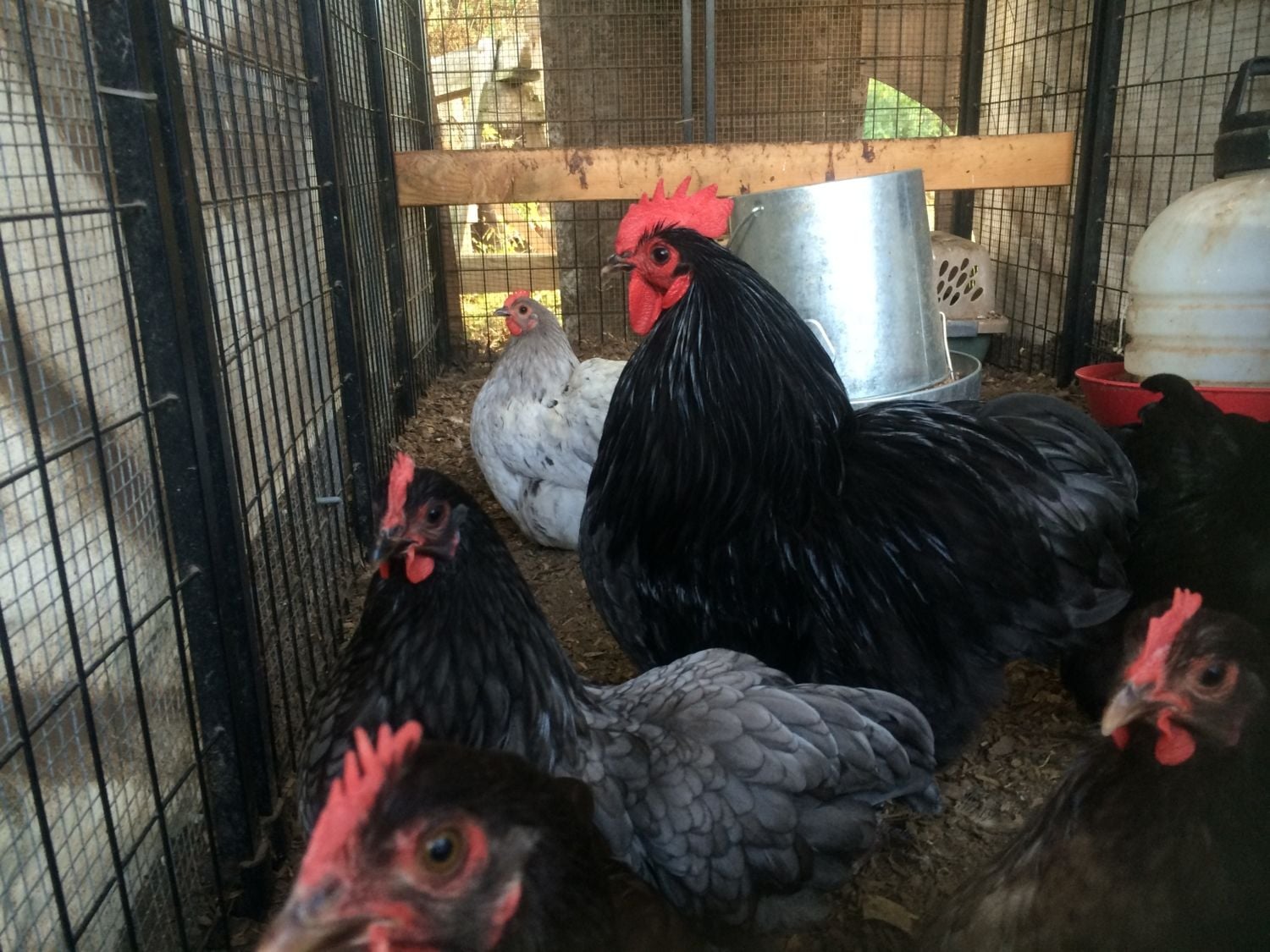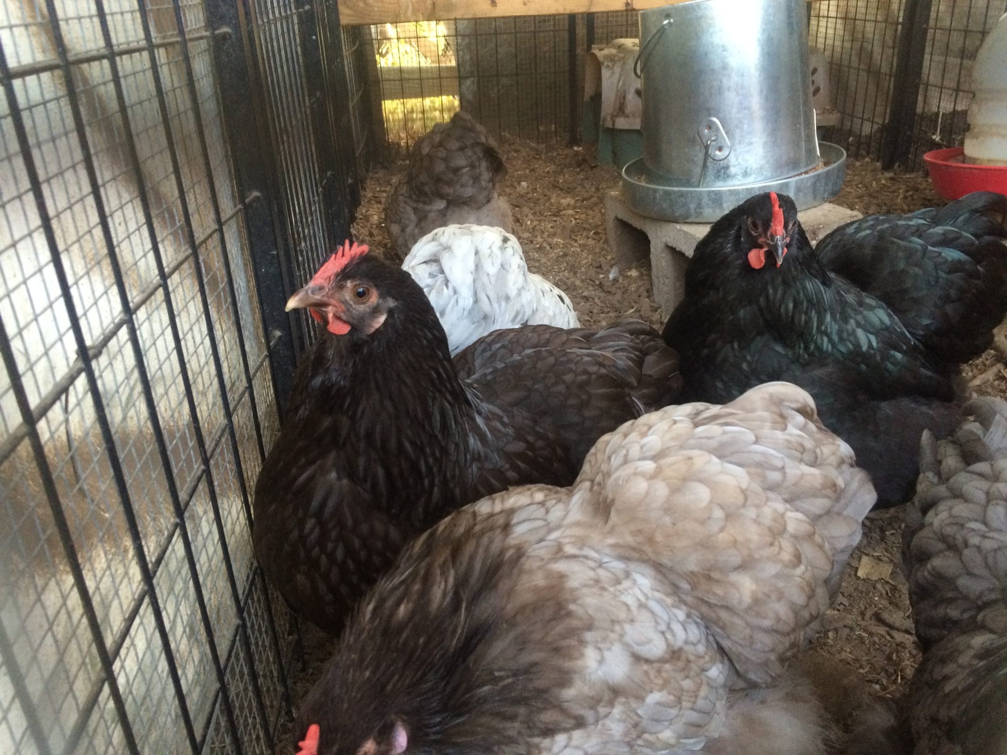 My beautiful chocolate pullet, black pullet, and once again, one of my mauve pullets that refuses to pose.