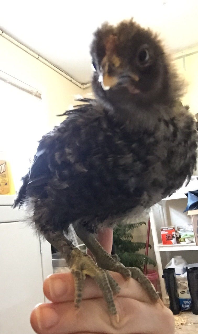 We picked up two hatchlings from a local chicken guy about a month ago. The gold one should be a Road Island red, the black one we have no idea. Blacklee has green feet that are starting to feather. And Goldie is twice the size, very ballsy and has a lot going on in the comb area. Thank you for any input about breed or sex!