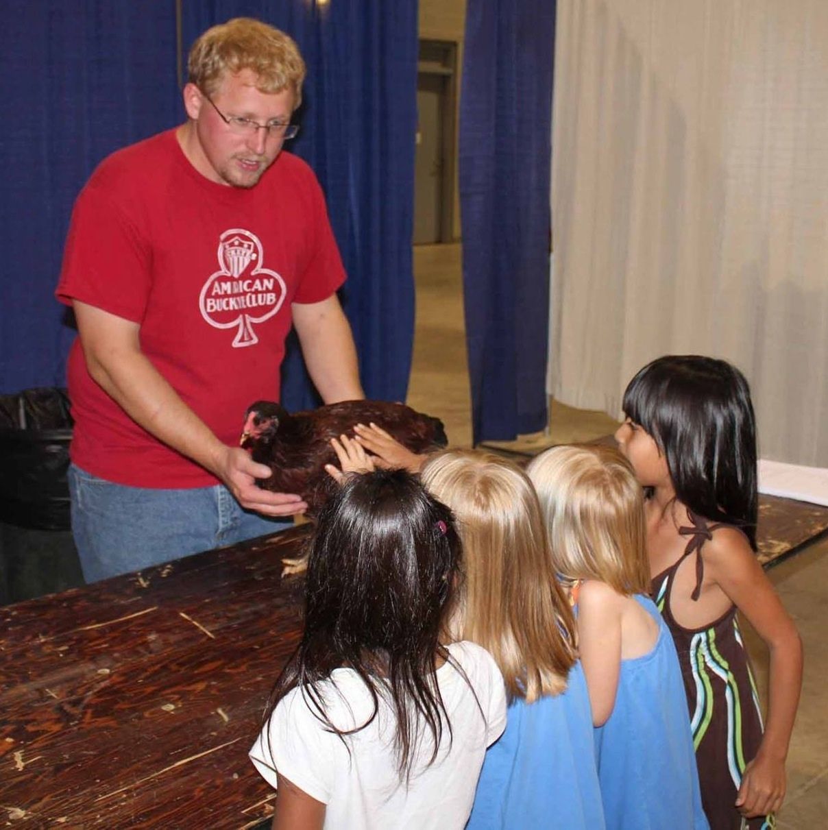 These types of pics are going to ruin your bully reputation. I think you are a big softy, but I actually know you and have seen you interact with children and go out of your way to help anyone who asks and treats you with dignity and respect.These were pics taken at the last show. I presented a talk on "Breeding for a Purpose" and before the presentation, I brought one of my young pullets from the showroom floor for the children to enjoy....note: In the second pic, I'm not holding her....she is just sitting there enjoying the attention![]()
