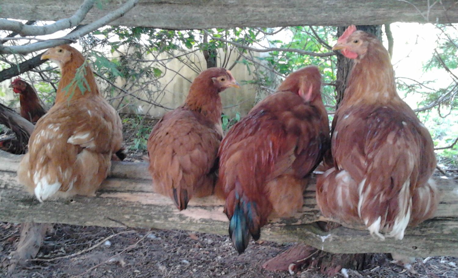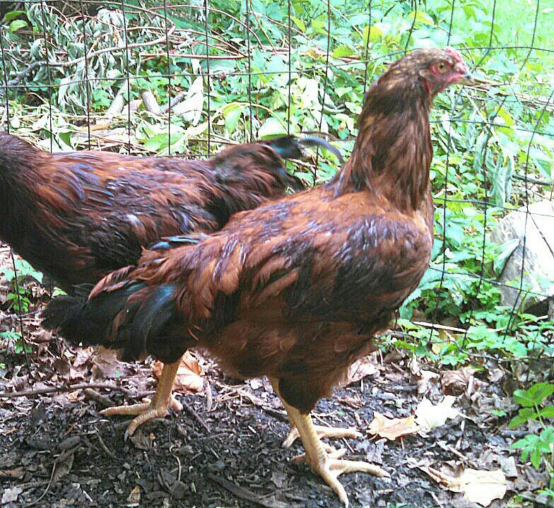 Here's my mixed flock, supposedly all Buckeyes but could have happened at the source or the custom hatcher's. Some roosters have already been culled, a white one with a pea comb,(How did that happen???) a nice big beautiful buff one with a single comb and a sour temperament, and some orangey red ones with black tails and single combs.