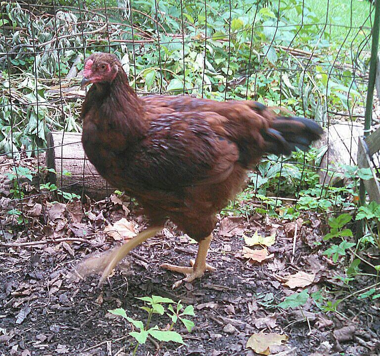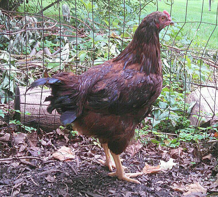 Do any of these look like Buckeye crosses? Most are clearly crosses of some sort but it would be nice if they had some Buckeye in them. Some do have feathers on their legs too. There are 3 "Buckeyes" in the bottom picture but they are hard to see. Only the Buckeye- like chickens have pea combs. Some of them have poor tail feathers-I will have a closer look at my Buckeye rooster tomorrow and see if it's just slow tail feathers or if there is a structural failure!!!!