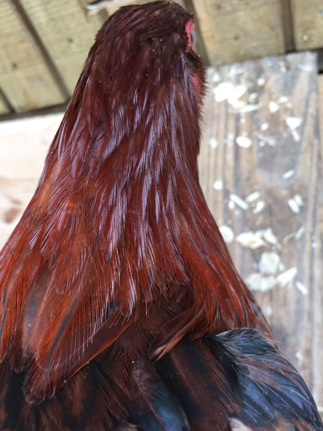 This one is a cockerel, notice one row of feathers with the primaries poking out along the bottom. You have to let them rest or stand relaxed to see this.