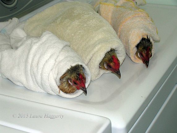 If you all haven't seen this pic before, it's a cute one of three Dutch birds all wrapped in towels waiting to be blown dry (chicken burritos!):
