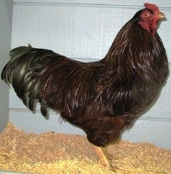When you actually see most Buckeyes in person, you will note their backs slope properly (slightly down toward the tail). Most photos do not convey the same. I have seen some photos of good birds that looks like their backs flip up. I suspect Laura's bird's back slopes slightly down. The back angles are NOT a problem area for the breed (although one would think looking at some of the photos).