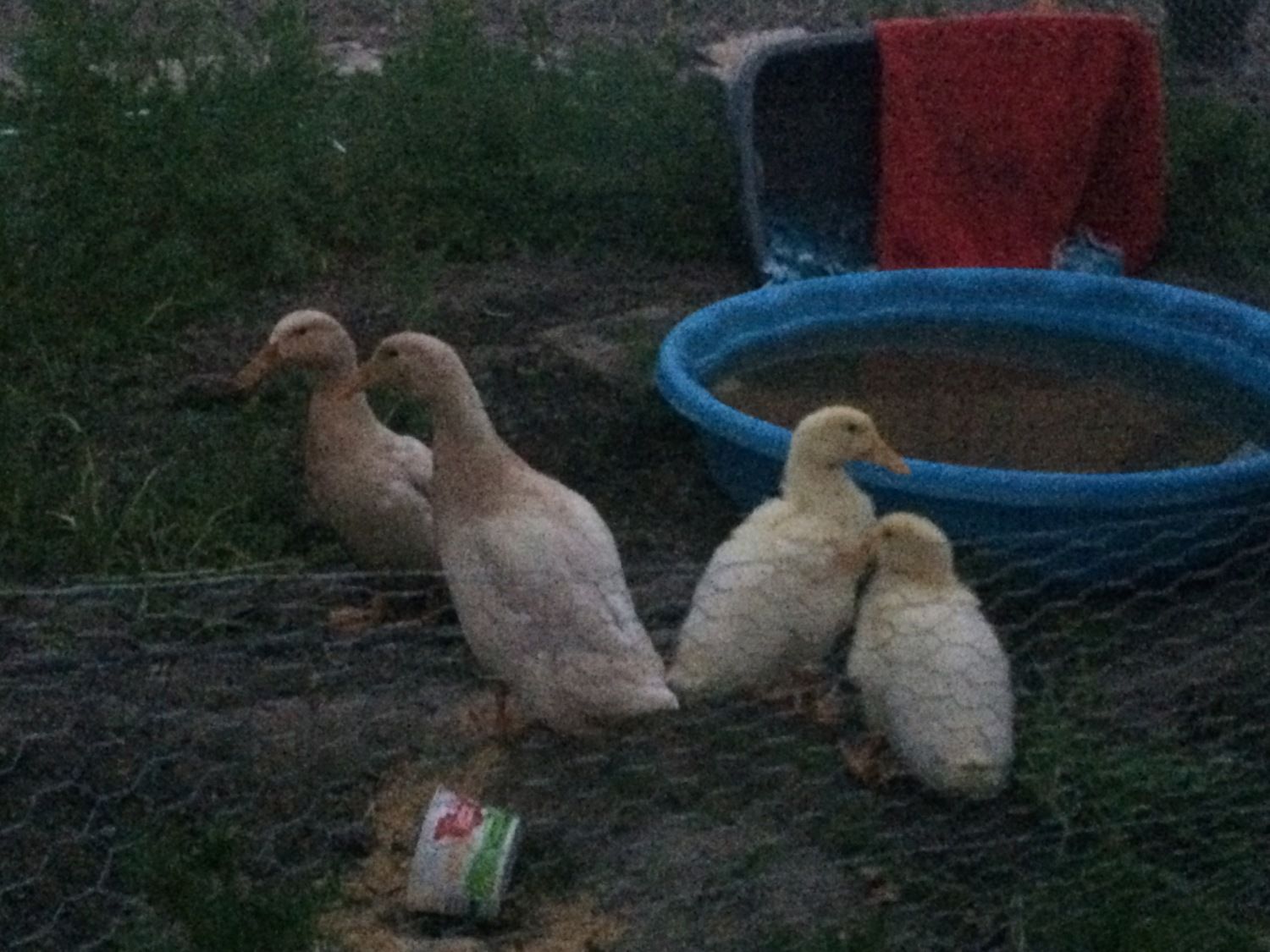 My two buffs and two ducklings I don't know age or species, their owner had a stroke so I'm taking care of them because they were alone at his house for 4 days when I found out. My buffs quack at night and I think it's because I take them in at night since they don't have a roof or house. I try to leave them out until later when it's warmer but they quack as soon as the sun sets, how do I transition them to sleeping outside once they're house/secure pen is built? It's urgent quacking like when they see cats not their usual quacks and they don't run away when I collect them like they usually do any other time I enter their area. Also what does head bobing mean? They did this before the baby's came into the picture too. i always attend to them when they quack in a urgent way incase an animal is near but as babies they made urgent noises when they didn't have a blanket on top of their brooder (red tote) and stopped when they got it. Or if the blanket fell in their tote it was crazy noises until I got it out and fixed it.