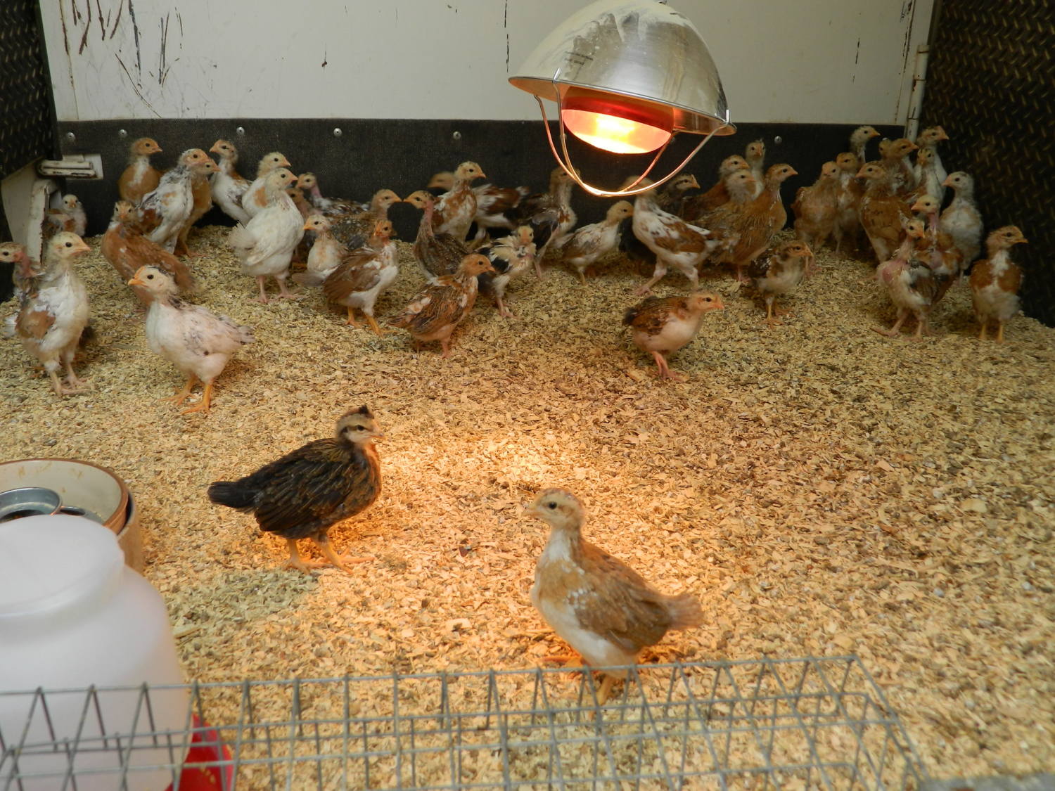 I went back out a minute ago to put them on the roosts if they were sleeping on the ground - and they were all lined up on the roosts, with Tank in the middle and the girls all around him snuggling against him. They all looked VERY happy - it's been a VERY long courtship. They'll be locked in here for about a week to learn that this is home before I let them out in a paddock. The paddock will have to have overhead coverage, because the SS's are escape artists... In addition to him acting as lead for this little family, he's around as a back up NN rooster. Longer term I may put the Aloha NN girls with him (depends on the male female mix I get with these chicks and how the boys look - I really do need to keep the number of roosters down). - Ant Farm