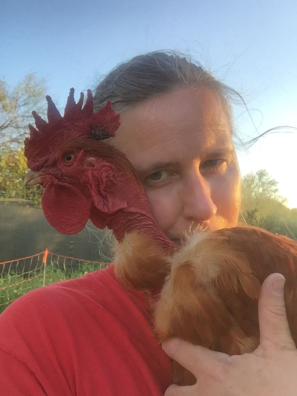 Yea, I try to keep them down ( roosters) also. I kept way too many the last time. I'm down to 6 now. I got some eggs set by the 7 th one before I got rid if him. But he's with my grandson so if I need him back for awhile then I wool be able to get him.Well, it's official. I finished the tractor coop, and the Speckled Sussex and Mr. Tankity Tank Tank were put together in their new home this evening (early enough to see each other a bit - lots of sexy activity goin' on, lots and lots of squatting - this was WAY overdue in their eyes, I think!). I may actually miss having to round Tankity Poo up every night and put him to bed - I had a last cuddle with him:![]()