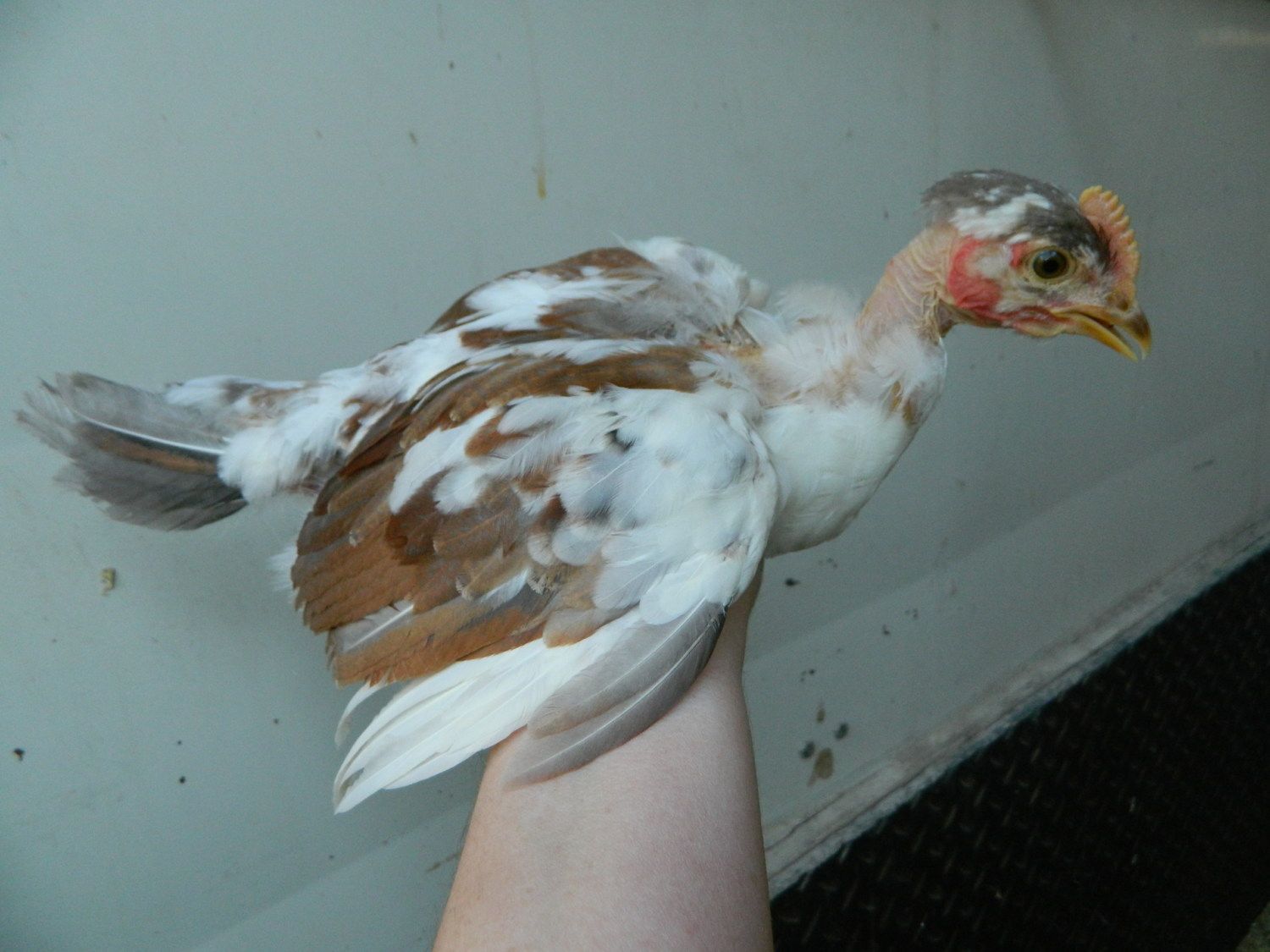Thought you guys might appreciate this. Picked this little lady up from the new batch of pullets my workplace got in yesterday. 8 weeks old pullet from hatchery lines. Never seen one like this come through before.