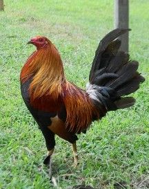 Appearance : (it was a free picture). He has large spurs( not super large, though) and he has a battle scar across his chest.