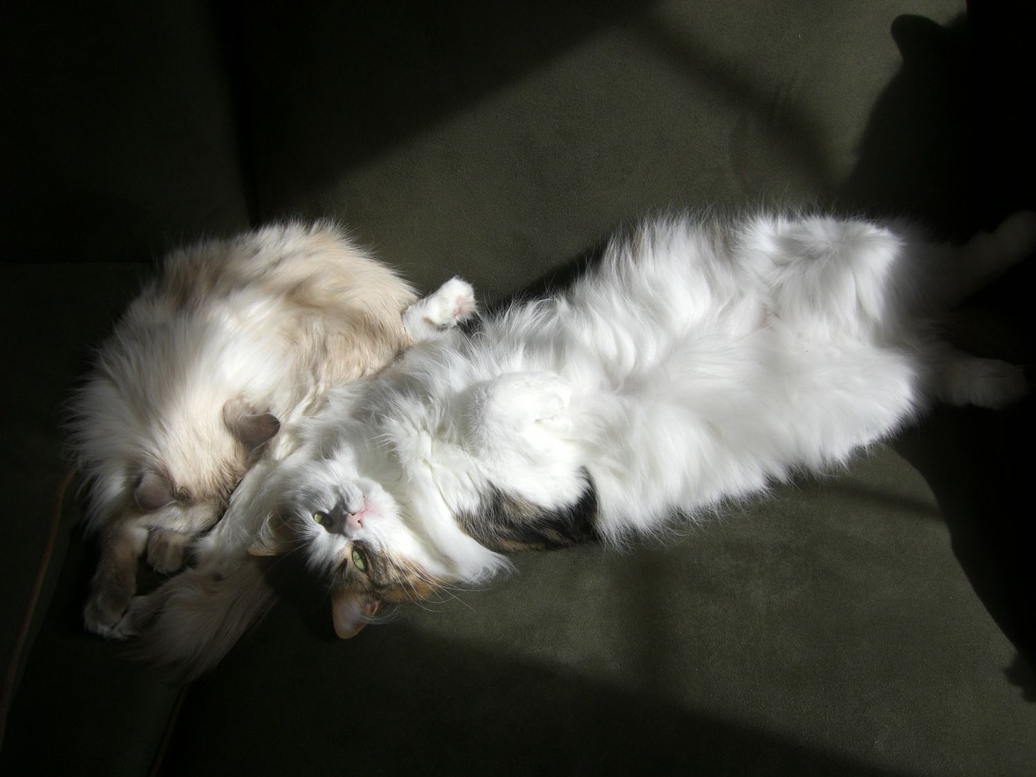 I'm sure Samson will learn Jamison's soft spots. They're such manipulative little buggers. For us, we forgive when they lay on their backs and show their big fluffy tummies....with the little rabbit paws up. We melt every time. Whiskey, as you can see above, lives in this position.
