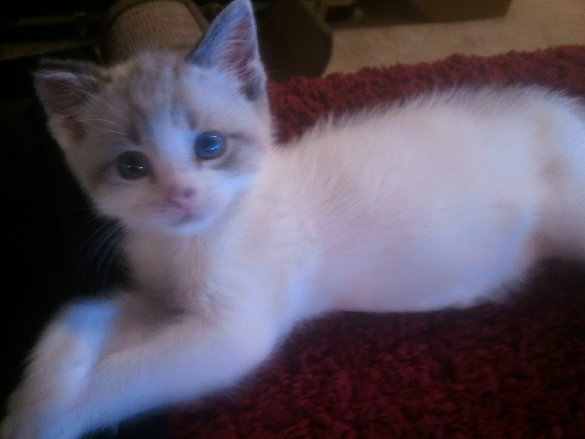 He is officially in the hilarious-kitten stage. He had his first true spaz moment yesterday. He was playing on his scratch furniture, and then all of a sudden it was like someone hit the fast-forward button. He was ripping around at mach 1 and whenever he tried to turn, he was going too fast and would just roll instead.