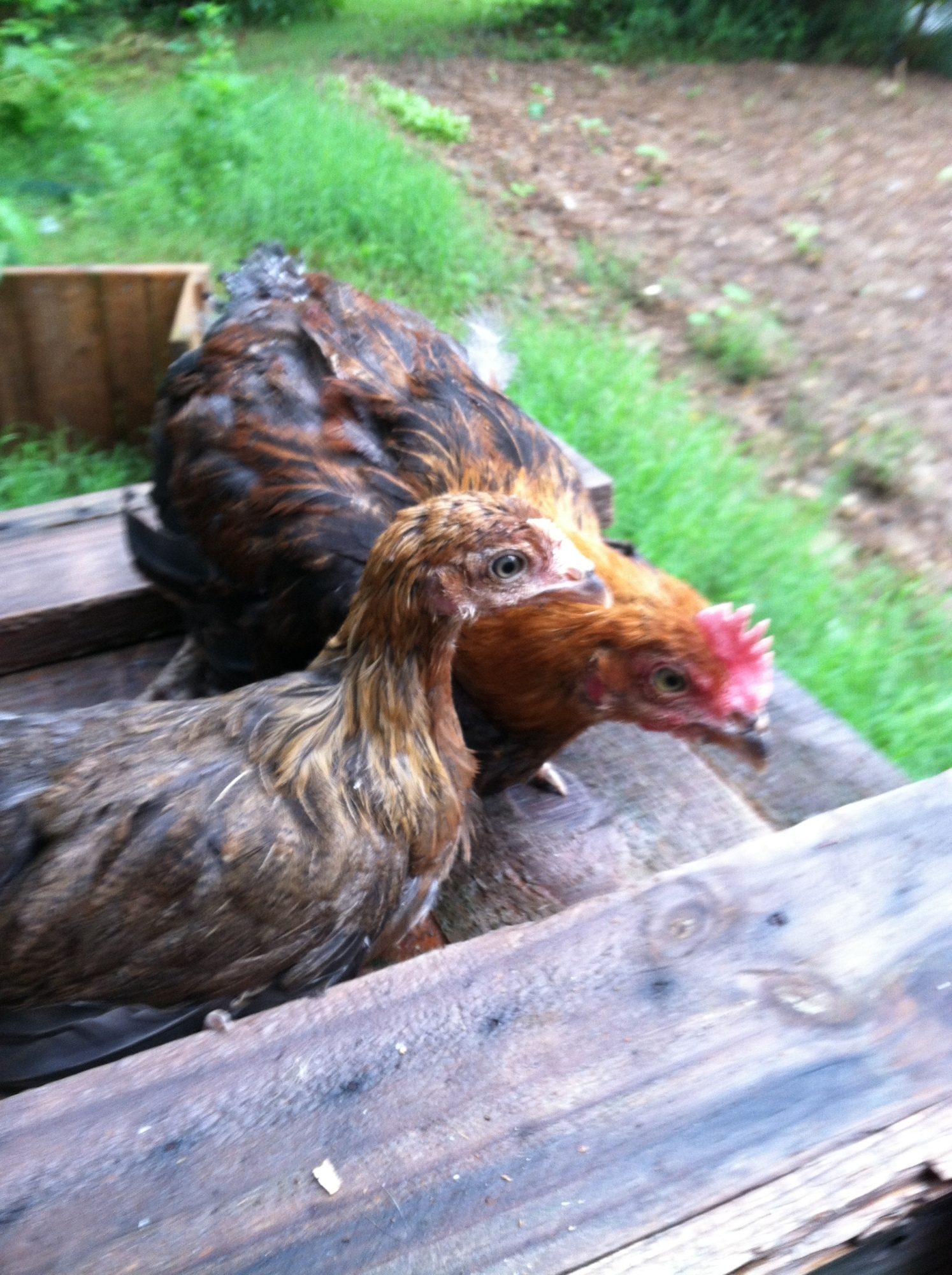 The cockerel might not be pure evil. It might just be hormones and time to separate the boys and girls or it might be that he needs some meat. Hamburger or cooked liver are my go to meats when I have chicks or young stock that are feather picking. Life got in the way of paying attention to my chicks and all of a sudden I noticed bare backs from feather picking. I had some hamburger that got missed in the fridge and fed it to them and the picking stopped. I've had the problem in the past only with Dorkings. I think they have some nutritional requirements as chicks that some of the feed formulas don't meet.Well here they are:. I'm not that great of a picture taker. Don't know if they'd even be considered exhibition stock or not. This is just a pair of them. The rooster is pure evil, he started pecking and trying to pull feathers from the little pullet, guess he thought she was attacking him. I gave him a little attitude adjustment and he settled down a bit.